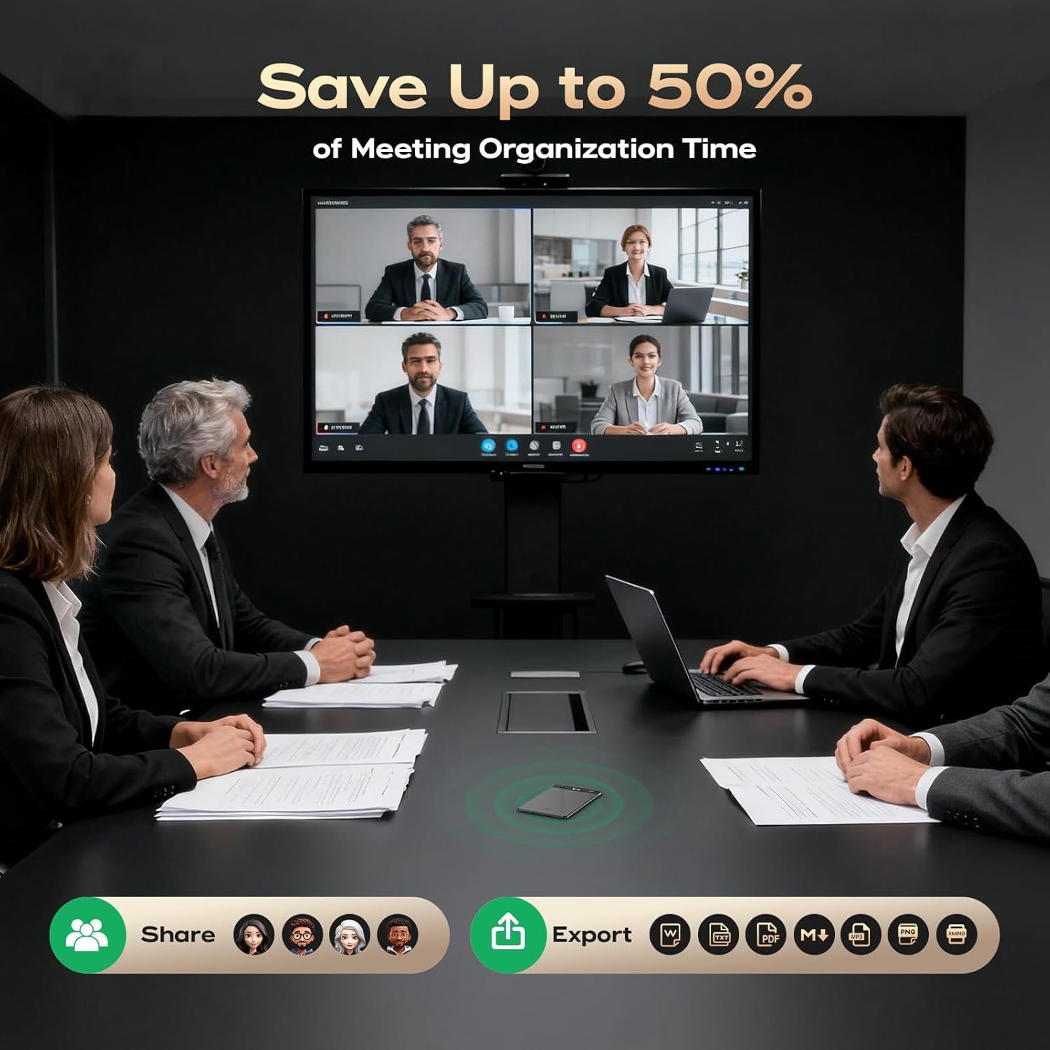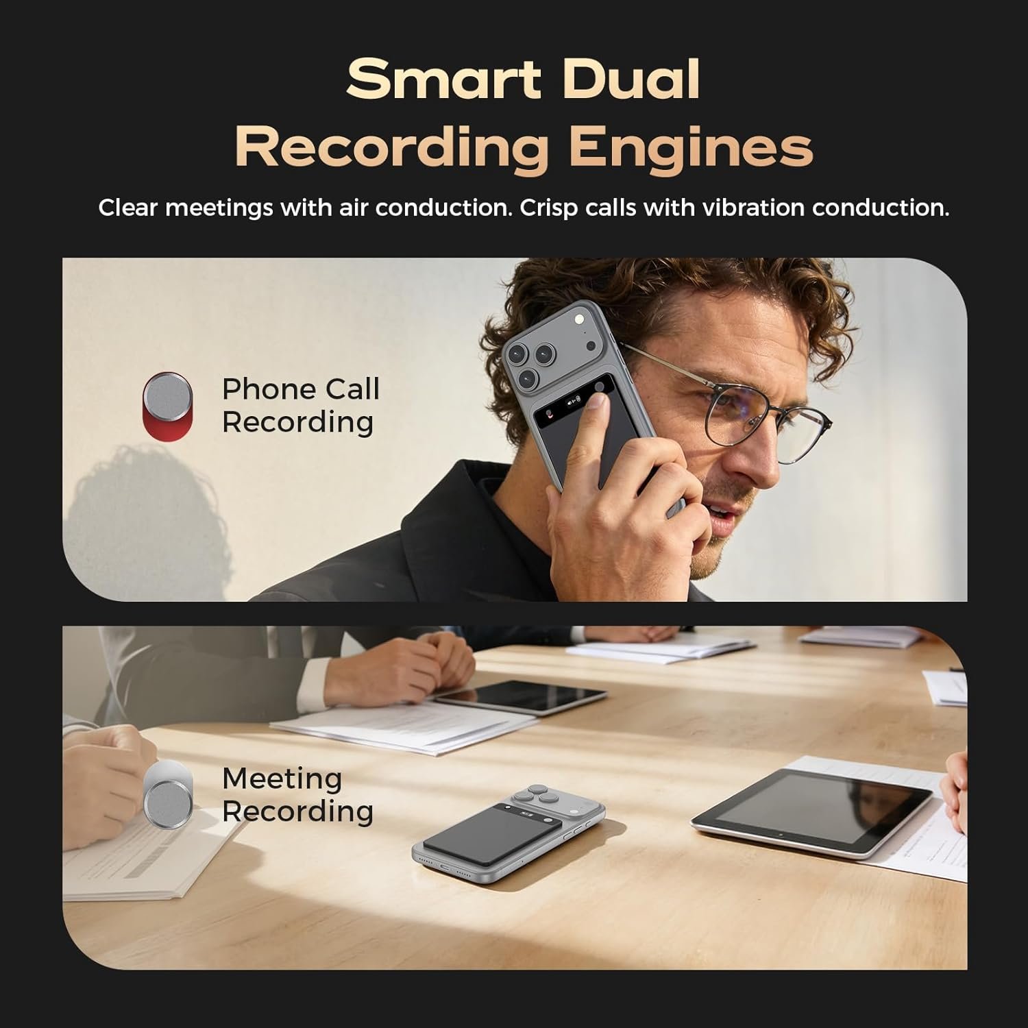 Built for Calls and Meetings: This Meeting Recorder features an Intuitive Dual-Mode Physical Switch for seamless switching between phone calls (UP) and meetings (DOWN). Designed for real workflows, it gives professionals quick manual control whenever needed. With support for recording without relying on an app, it makes capturing conversations simpler and more efficient in business, study, and everyday work settings.