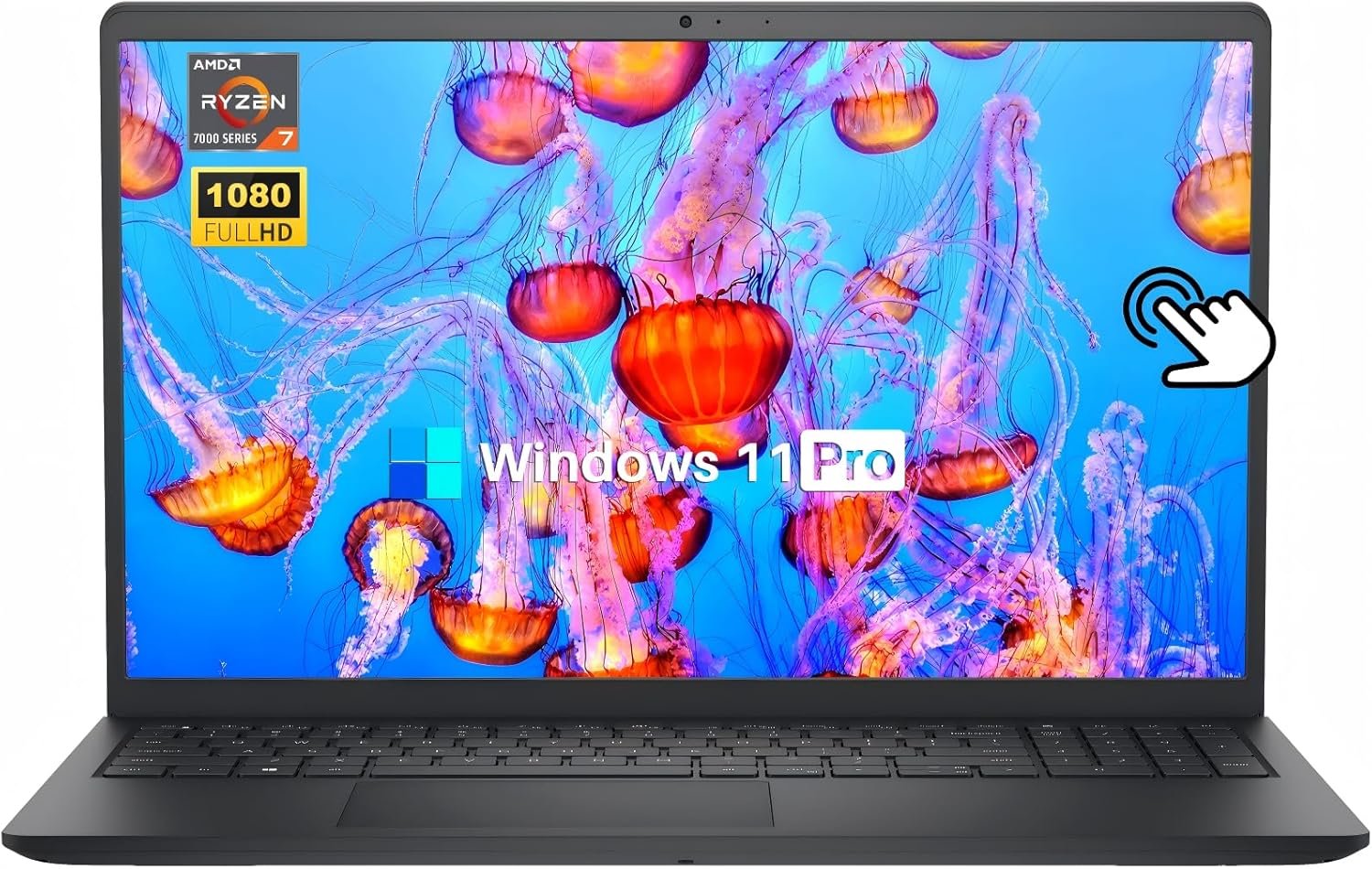 Dell Inspiron 15.6″ FHD Touchscreen Laptop Computer, Windows 11 Pro, AMD Ryzen 7 7730U (8-Core) Processor, 16 GB 3200MHz RAM, 512 GB SSD, LED-Backlit Display, AMD Radeon Graphics, Wi-Fi, HD Webcam