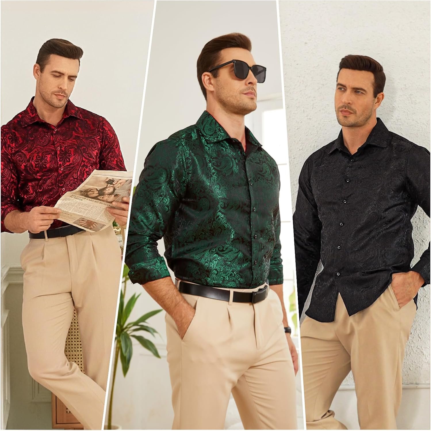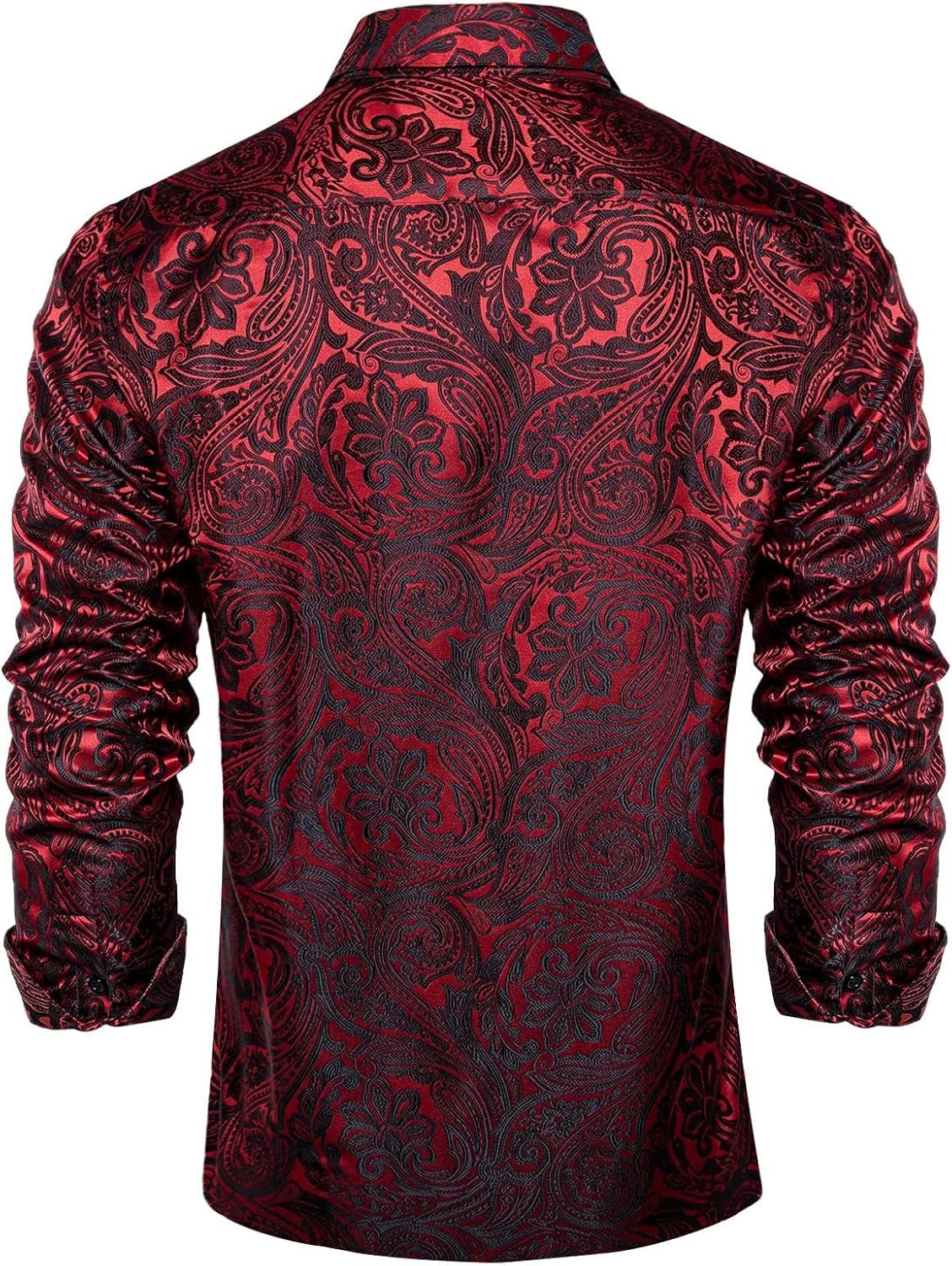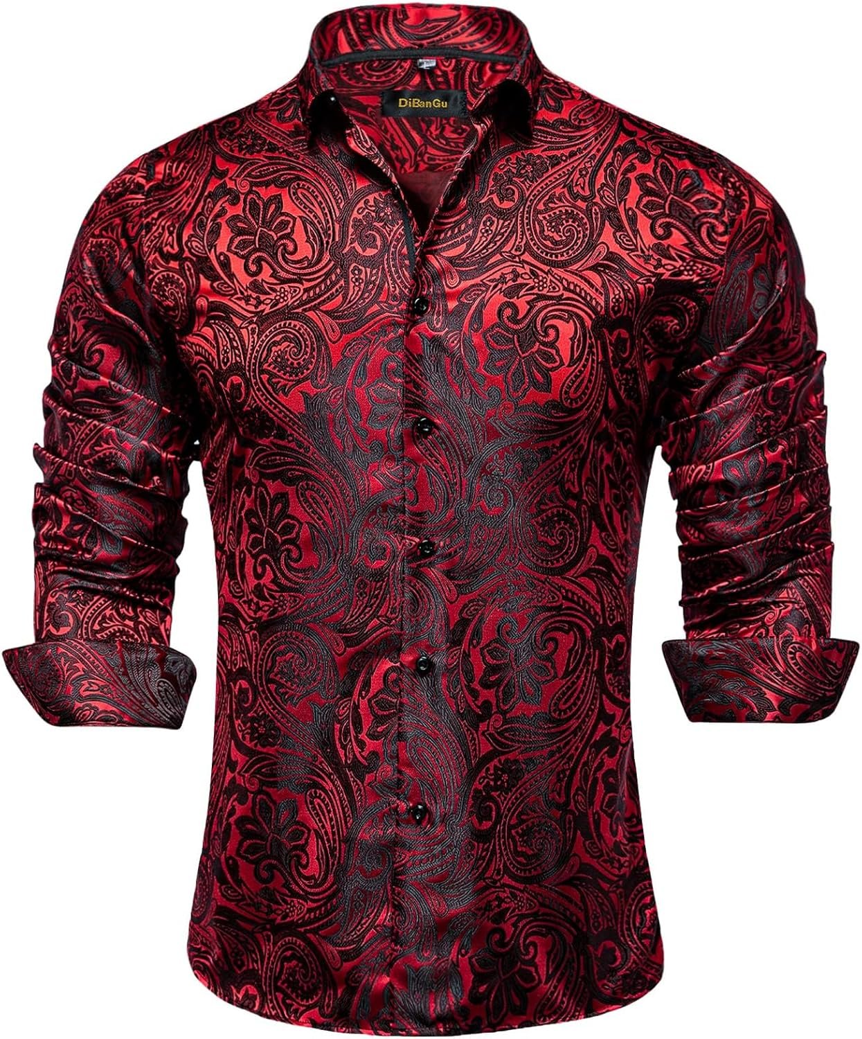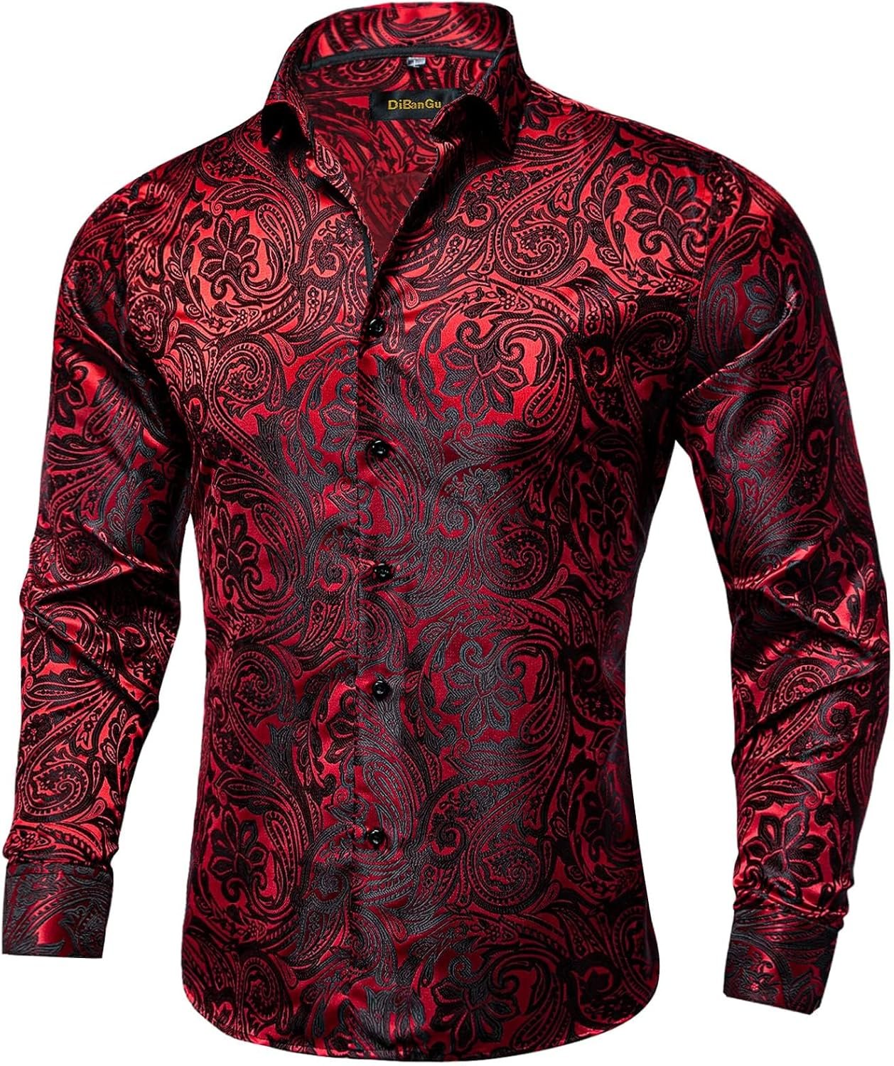 DiBanGu Mens Silk Paisley Dress Shirts,Long Sleeve Button Down Shirt Casual Regular Fit Shirt for Men Wedding Party