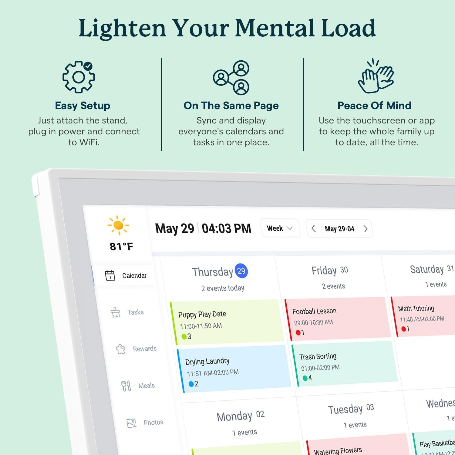 ✅【1-Minute Quick Setup】 Just connect to power and Wi-Fi – automatic calendar sync completes in under 1 minute! Fully compatible with Google Calendar, Apple iCloud, Outlook and other major platforms – no complicated configuration needed.