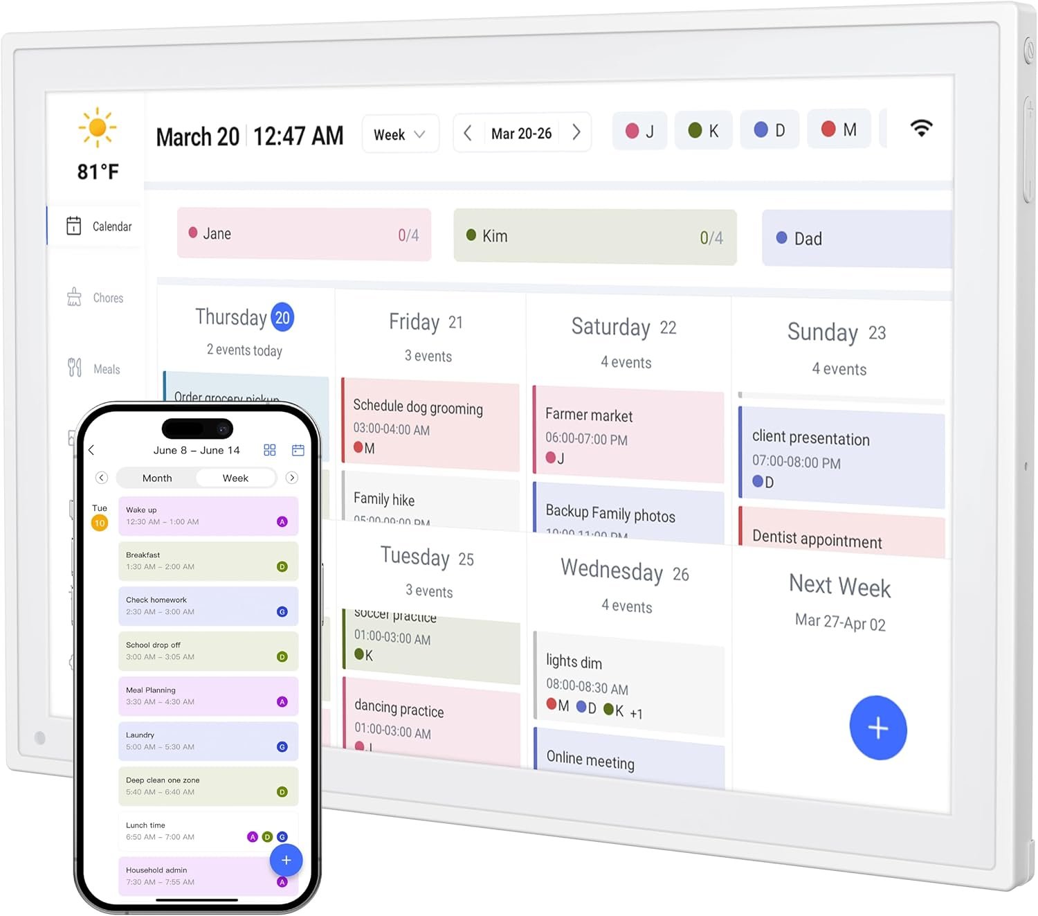 ✅【Family Shared Calendar】 Supports up to 20 family members with color-coded personal schedules, making household chores and parenting activities coordination effortless.