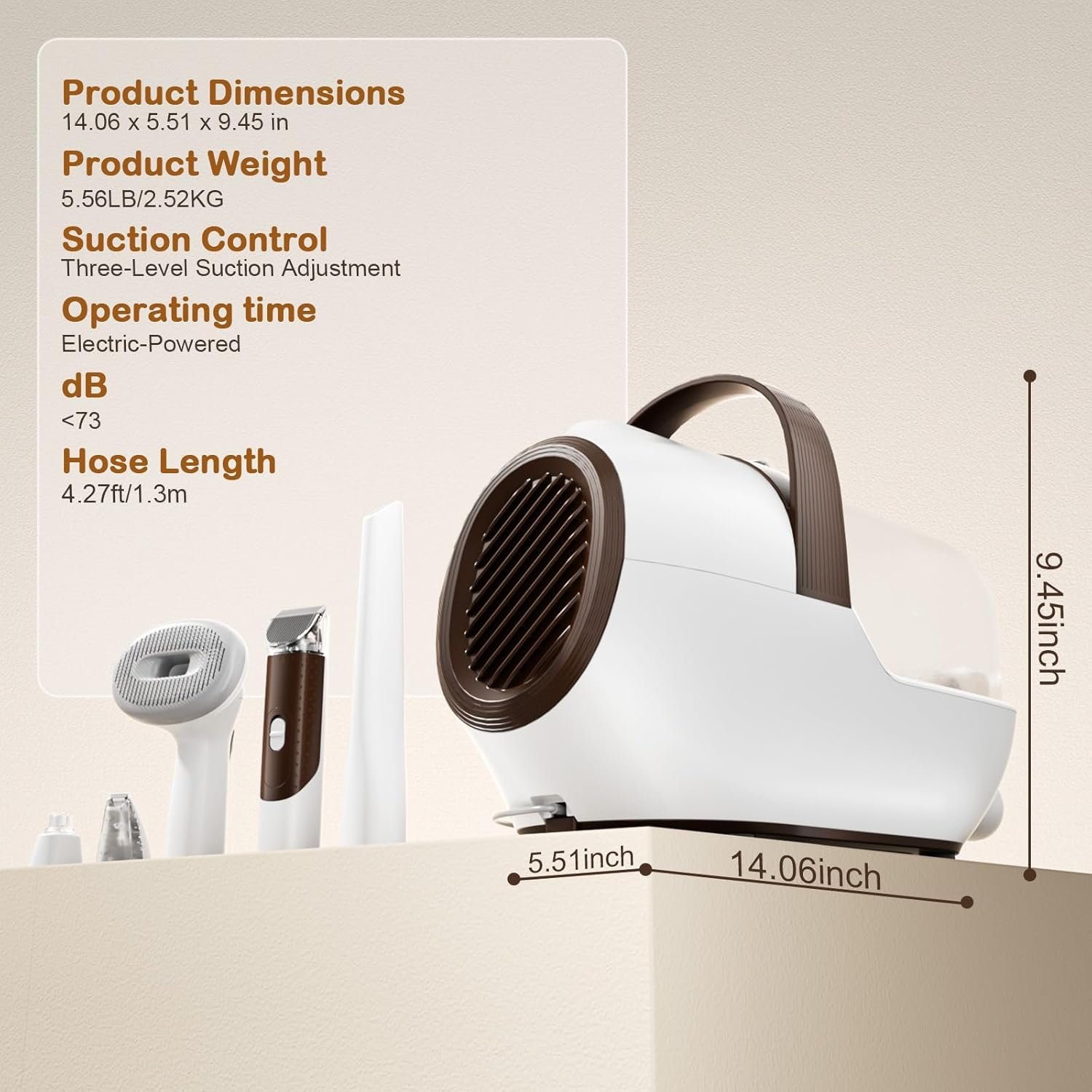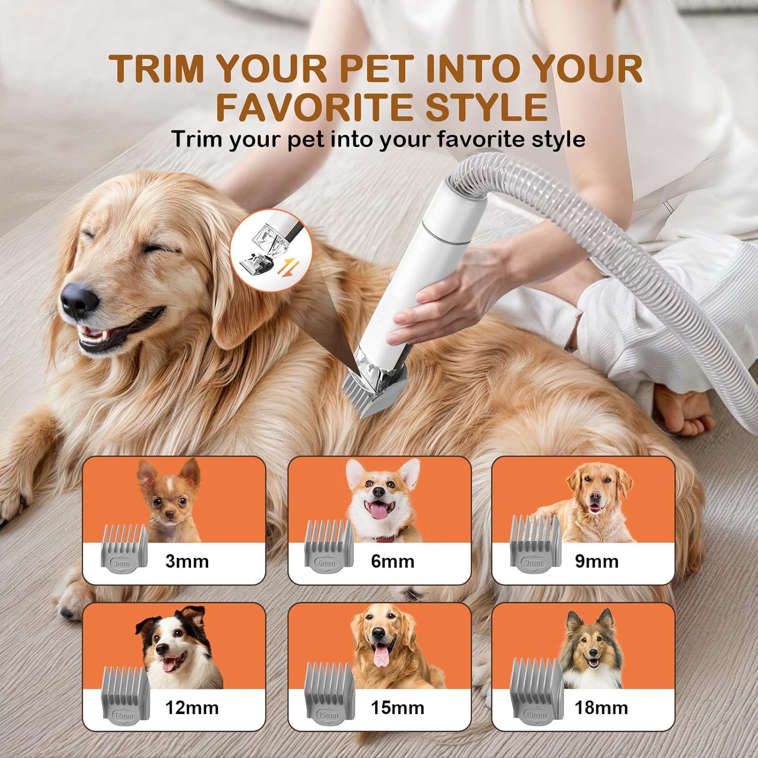 Dog Grooming Vacuum, Dog Grooming Kit with Pet Clipper Nail Grinder, 3 Suction Modes Dog Brush Vacuum with 6 Pet Grooming Tools(Camel)