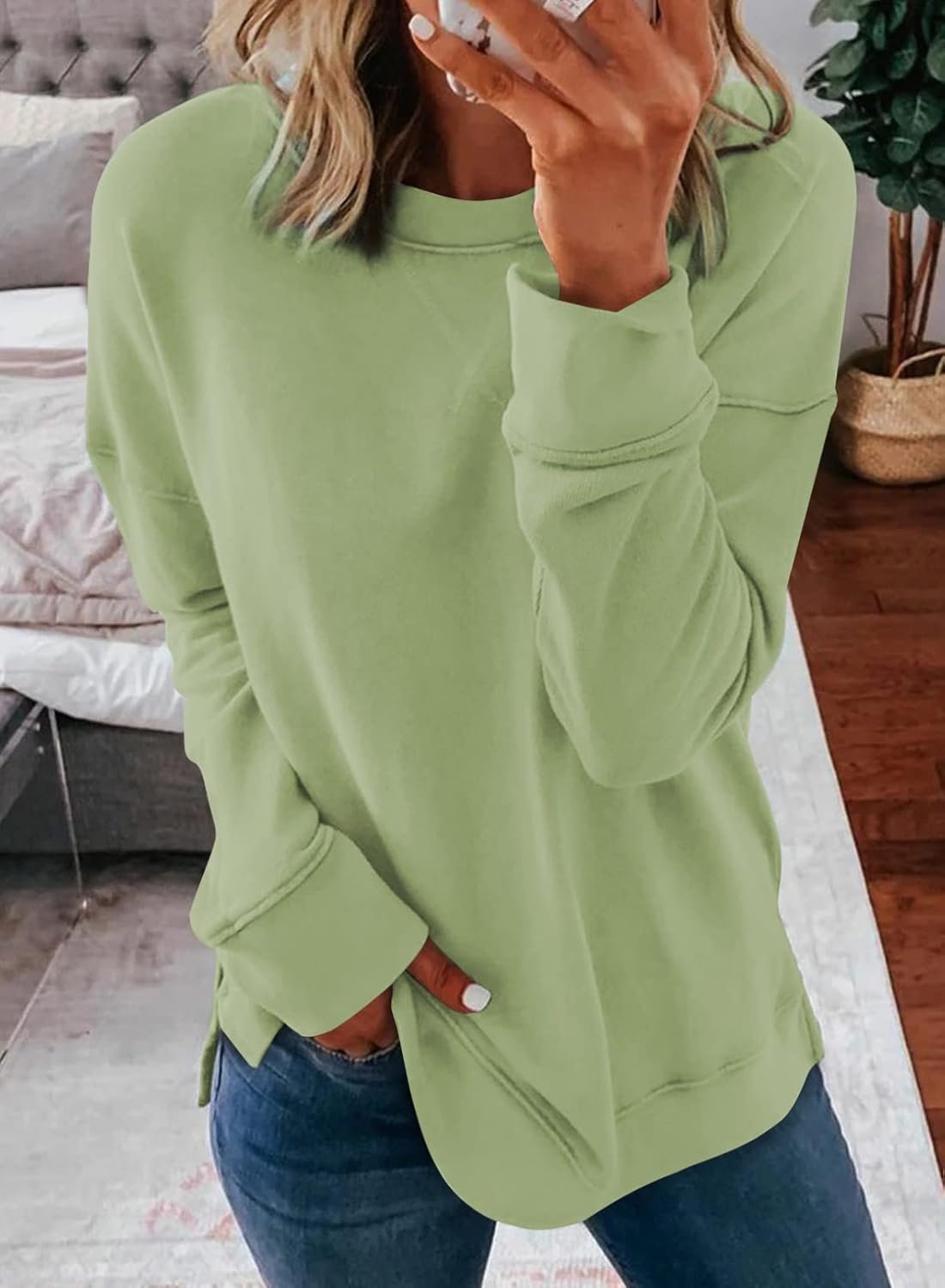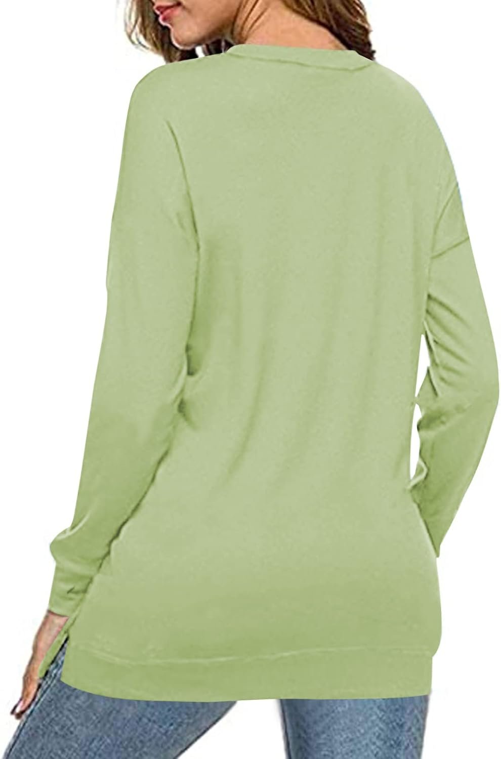 Dokotoo Womens Casual Long Sleeve Crewneck Sweatshirt Side Split