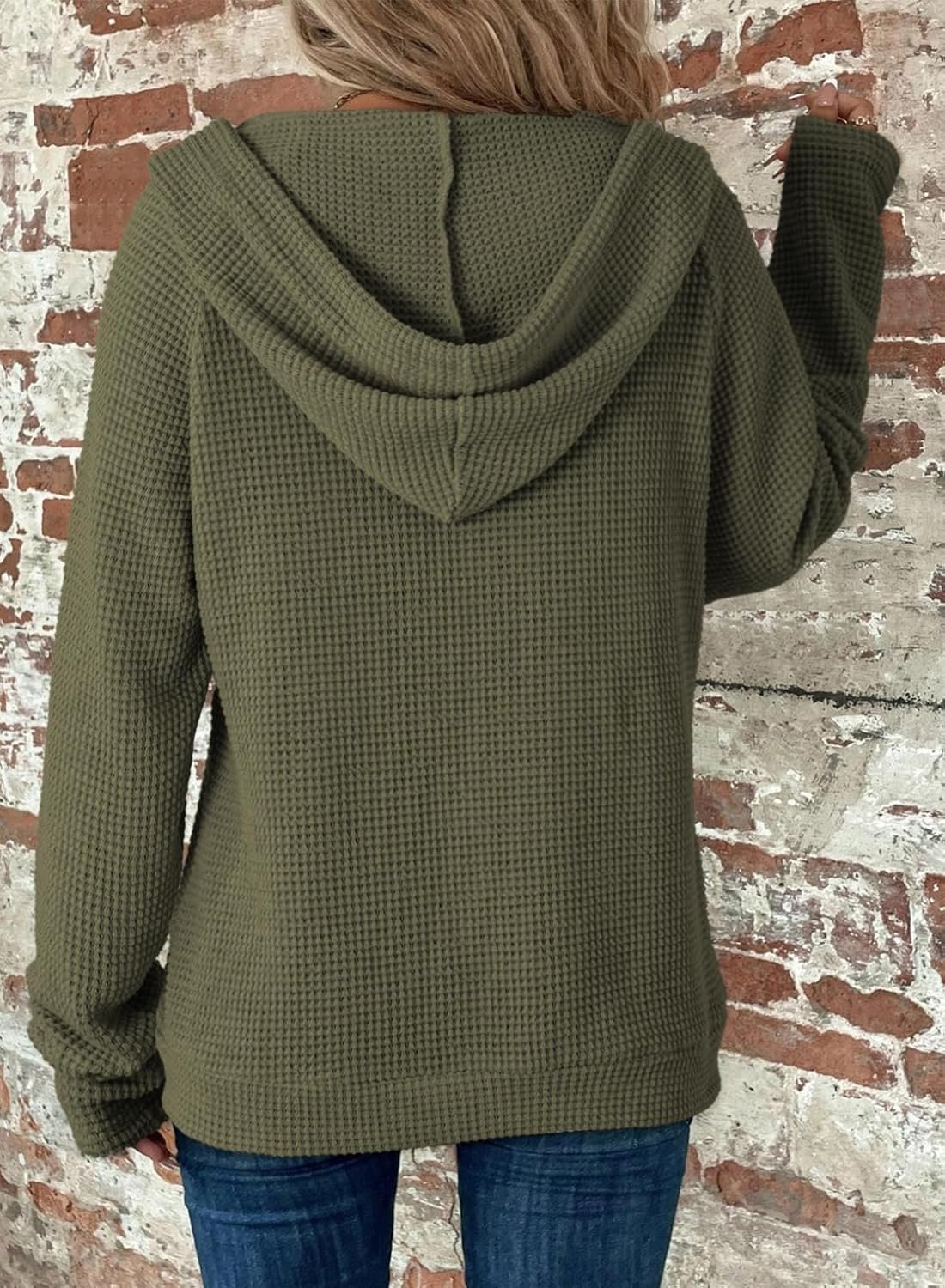 Dokotoo Women’s Full Zip Up Hoodies Waffle Knit Long Sleeve Drawstring Casual Sweatshirt Hooded Tops
