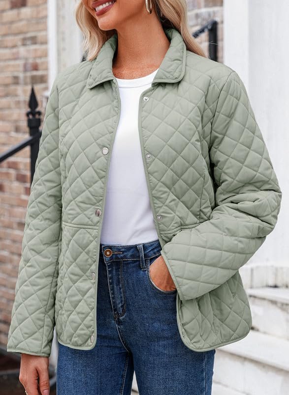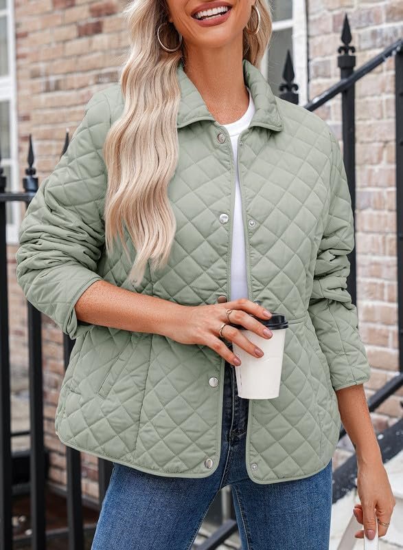 Dokotoo Women’s Winter Quilted Jackets Long Sleeve Button Down Diamond Puffer Jacket Outerwear Coats with Pockets