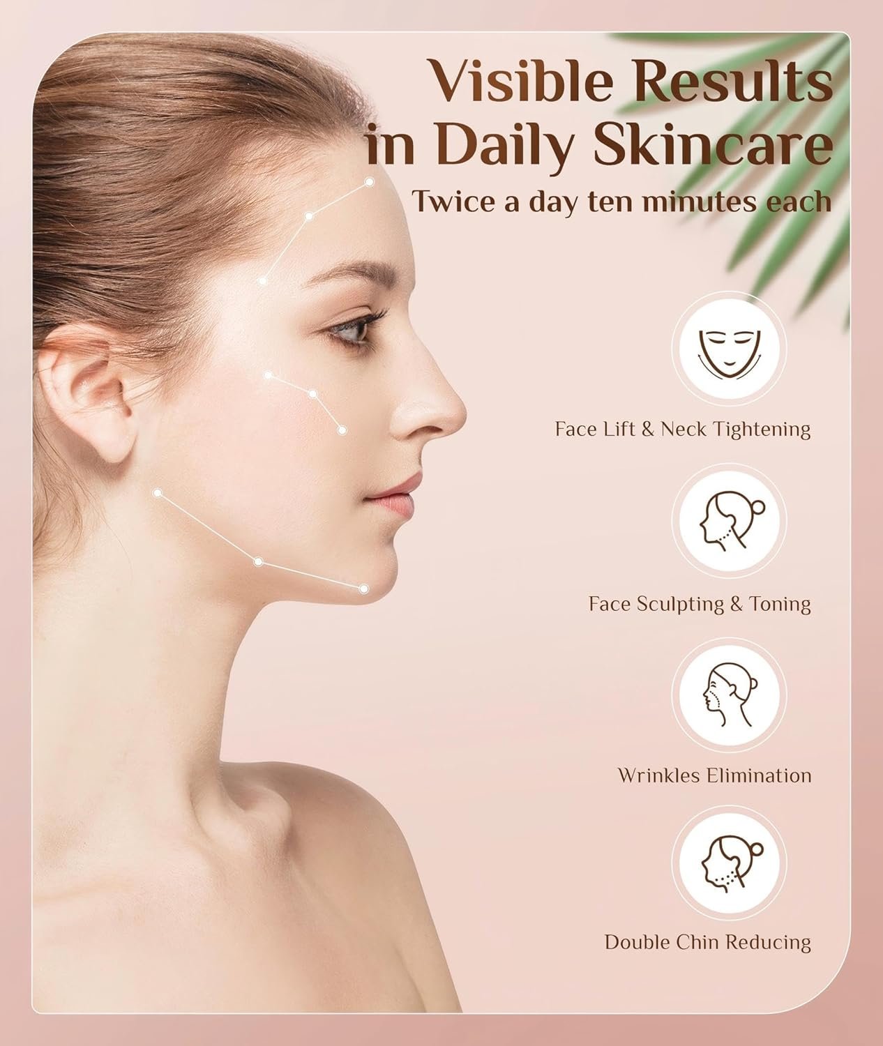 Dopsikn 7 Color Galvanic Machines – Red Light Therapy for Face and Neck, Face Massager Tool for Wrinkles, Double Chin, Vibrating Facial Massager with Thermals, Pink