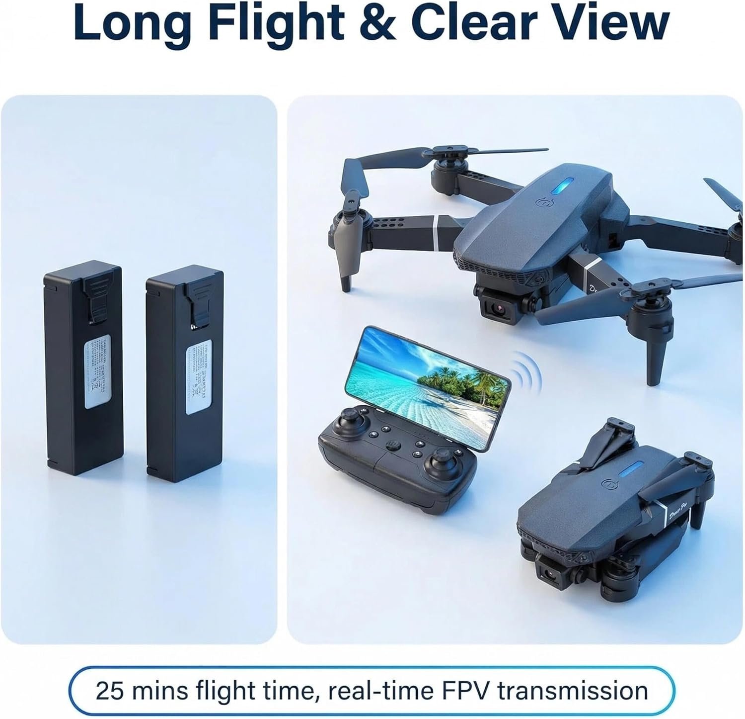 【Two Batteries for Extended Flight Time】: With two rechargeable batteries, enjoy extended flight time of up to 25 minutes of fun. Features such as over-current protection, emergency stop, and low-power alerts ensure a safe and reliable flying experience.