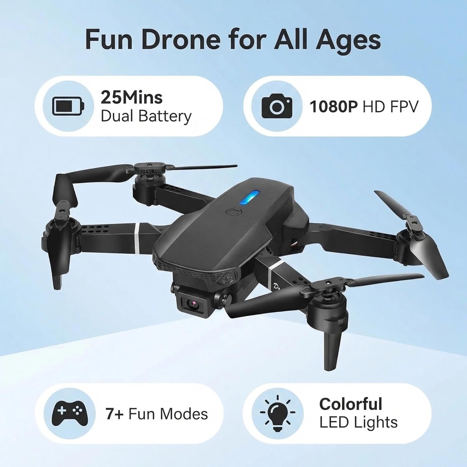 【1080P HD Recording】: The drone comes with a high-quality 1080P HD camera. Whether it’s breathtaking landscapes or special family moments, this drone helps you preserve every precious memory with exceptional accuracy. Simply connect your smartphone to the drone’s camera to enjoy a real-time view.