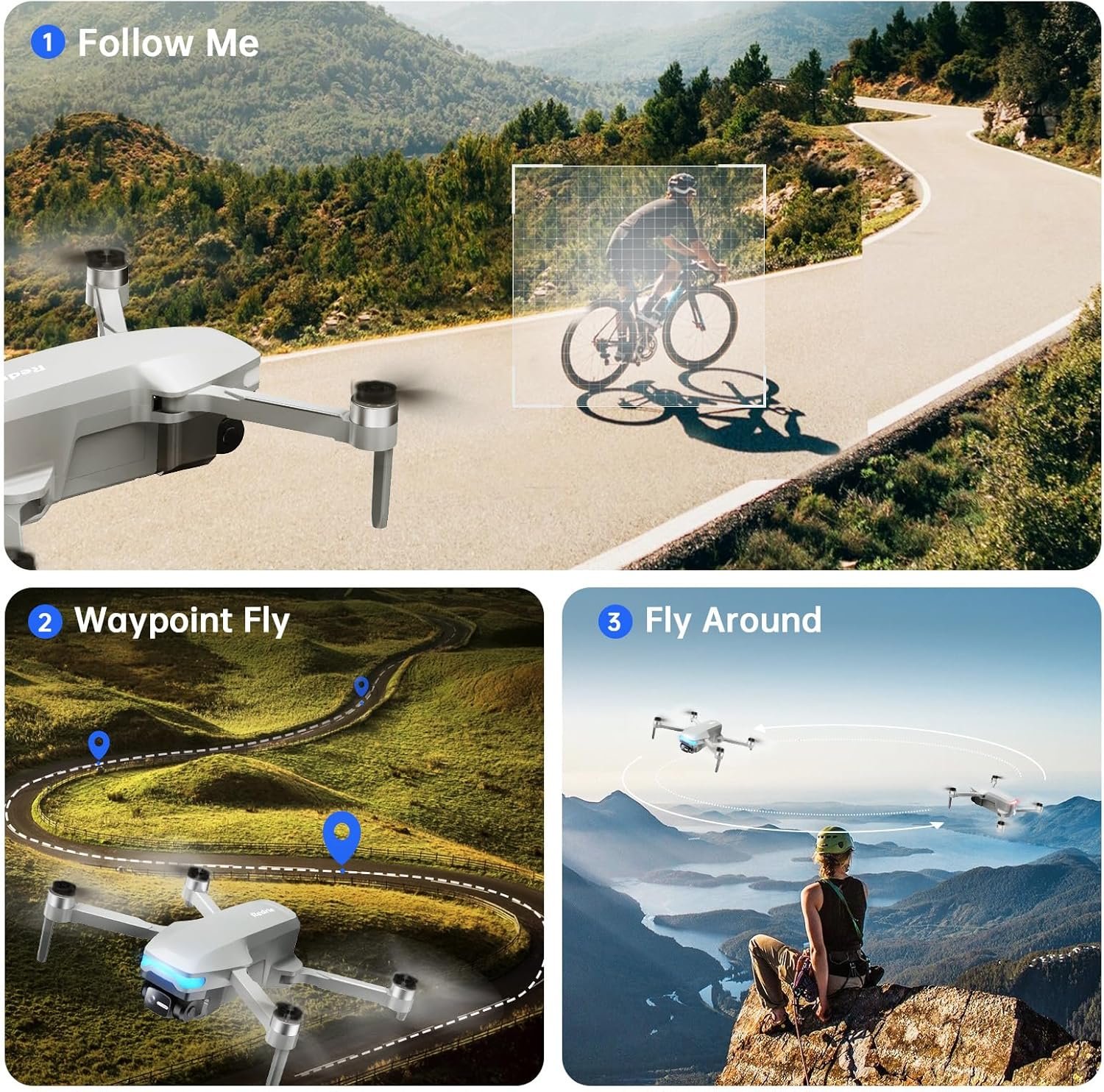 [ Versatile Smart Flight Modes ] Equipped with a high-precision GPS module, it automatically returns home when losing signal, exceeding flight range, or running low on battery. Supports GPS Follow, Route Planning, and Fly Around—perfect for beginners and hobbyists, adding fun and versatility to your aerial shots.