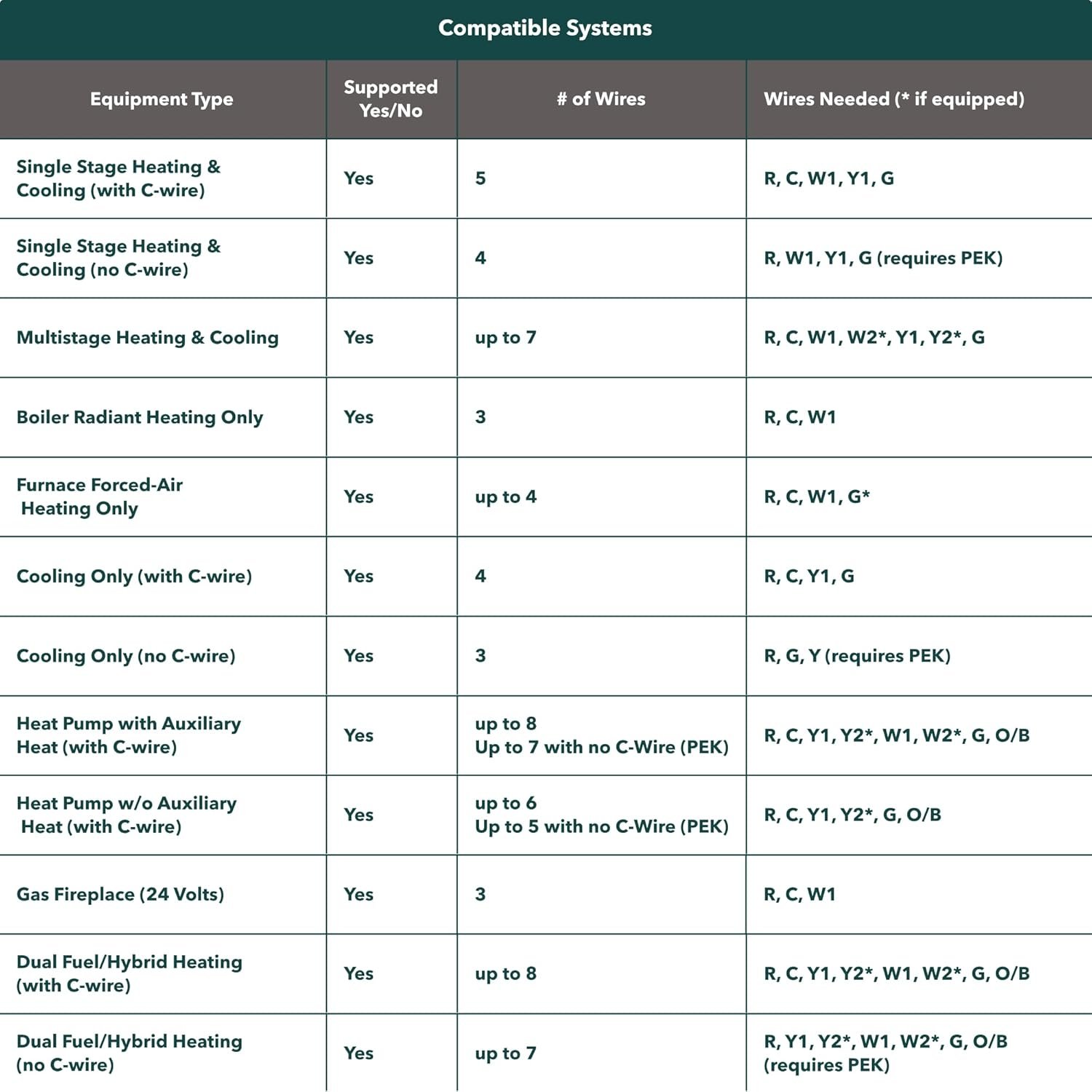 Compatible with most 24VAC HVAC systems: furnaces, ACs (2H/2C), heat pumps (2H/2C + 2 stage AUX), boilers, PTACs, and fan coil units (3 fan speeds). Includes Power Extender Kit for C-Wire-less homes, ensuring easy installation