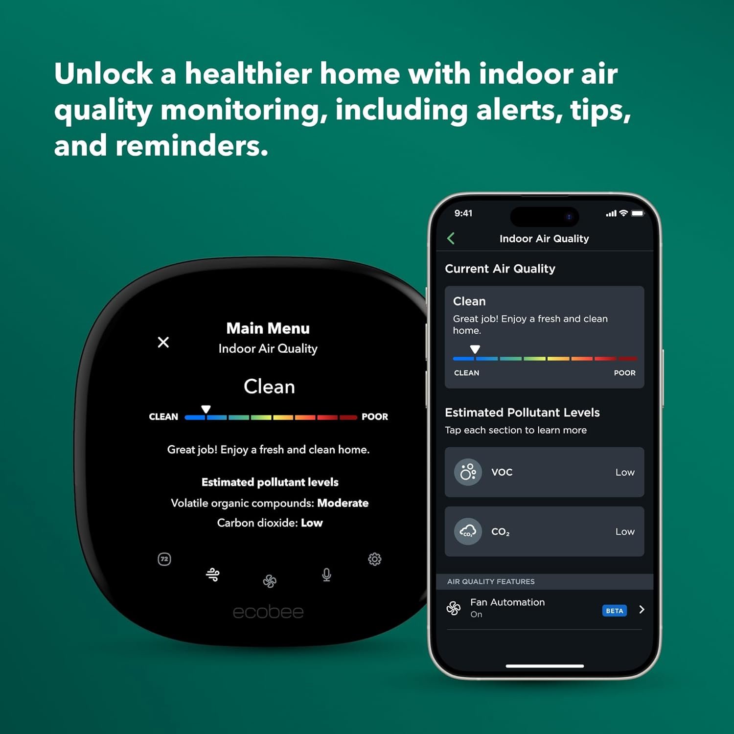 ecobee Smart Thermostat Premium with Smart Sensor and Air Quality Monitor – Programmable Wifi Thermostat – Works with Siri, Alexa, Google Assistant, Black