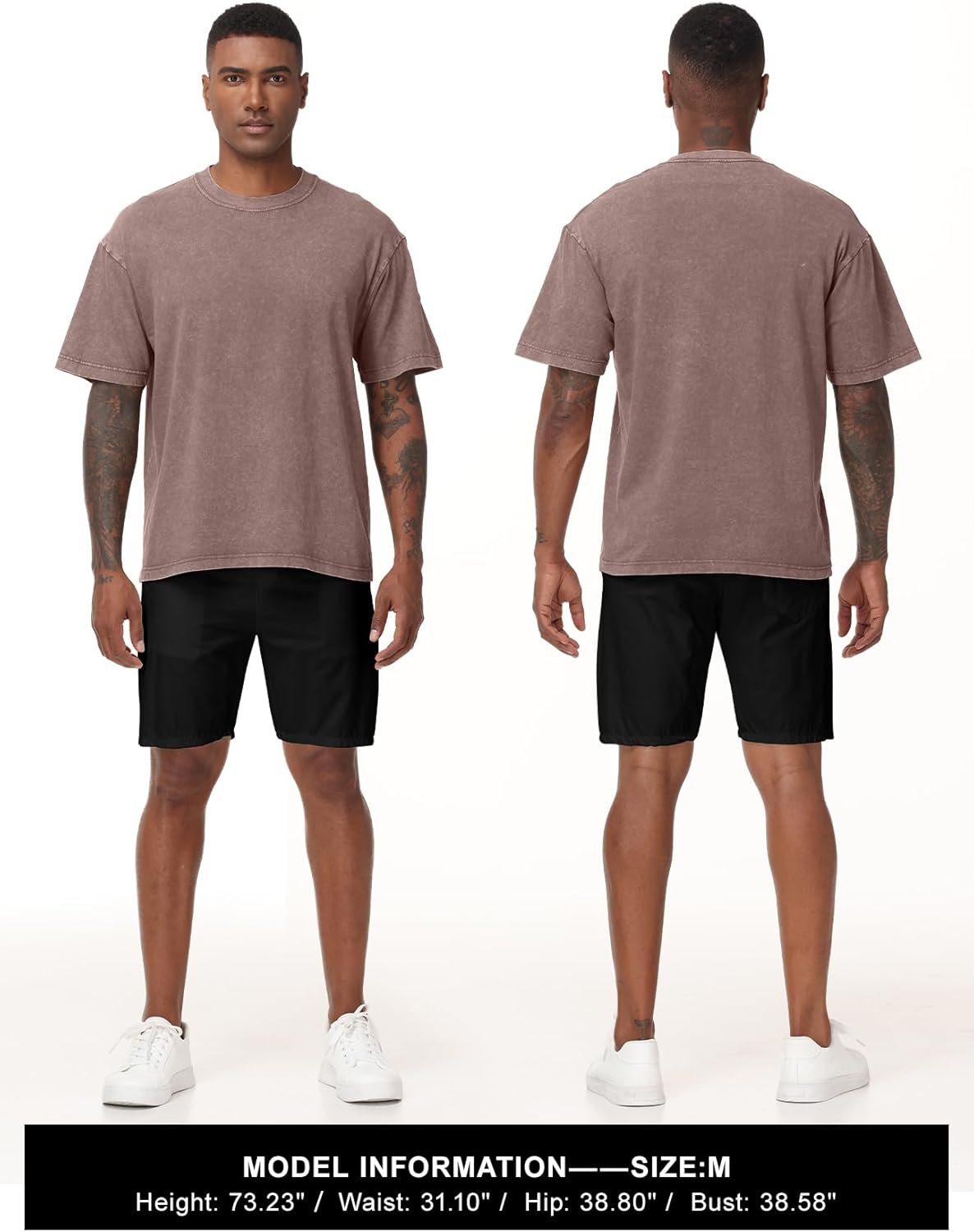 Eiscntd Men’s Oversized T-Shirts Heavyweight Cotton Vintage Washed Loose Fit Unisex Baggy Tee Shirts