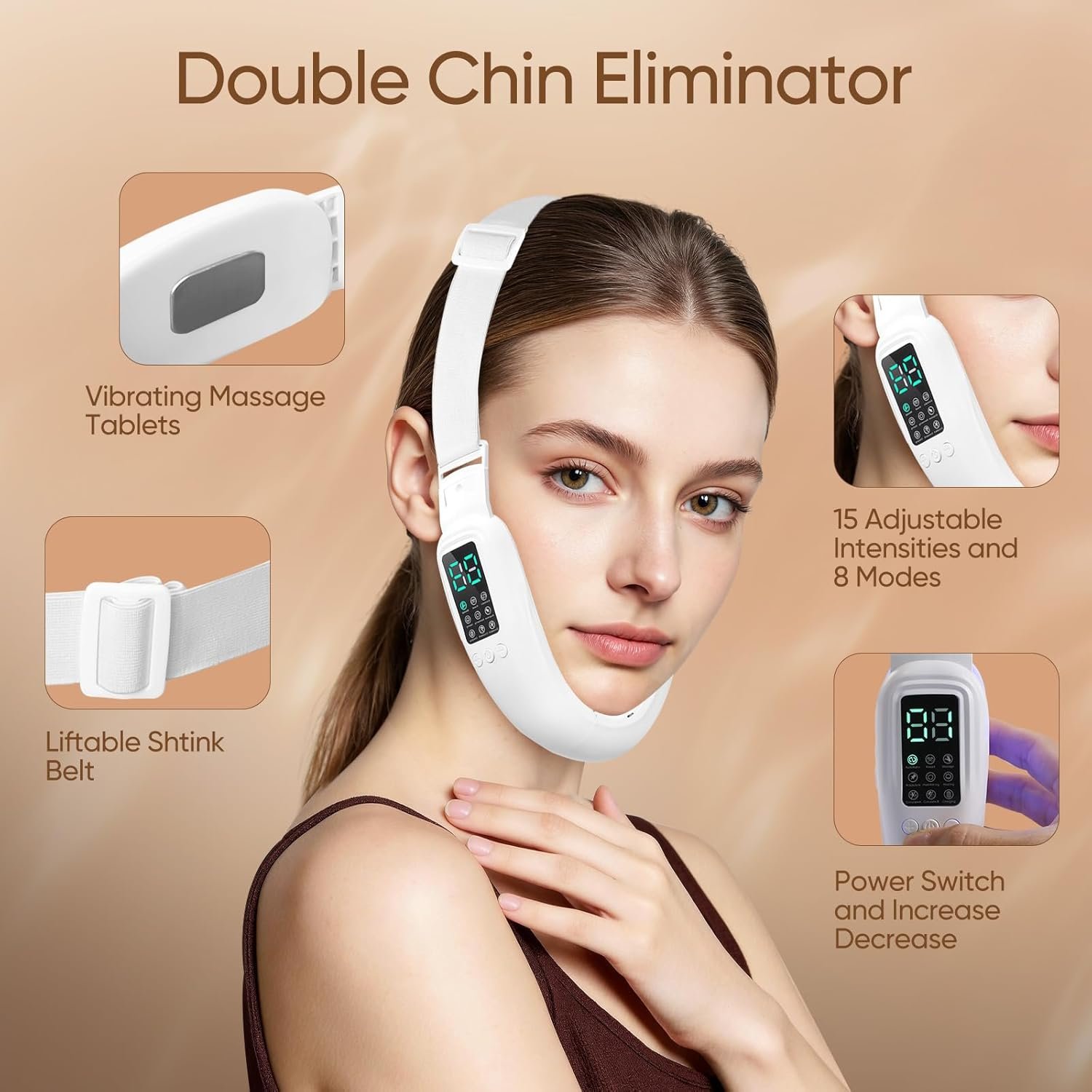 Electric Double Chin Device and V-Face Machine with 8 Modes and 15 Gear Adjustable Intensities – Intelligent Double Chin Machine for V-face