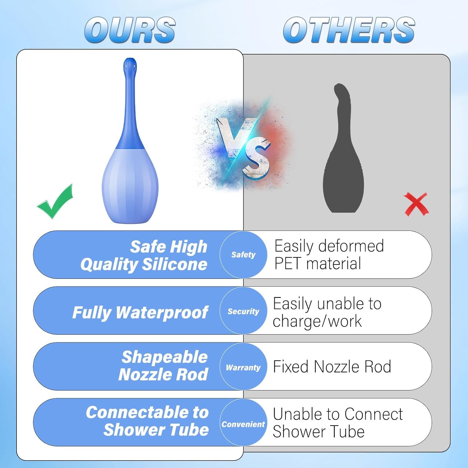 Flexible Nozzle: Unlike other fixed-angle enema bulbs, the nozzle of this cleaner can be bent and fixed, adjusting to any angle you want to use, making it more convenient for female perineal irrigation or internal cleaning of the channel