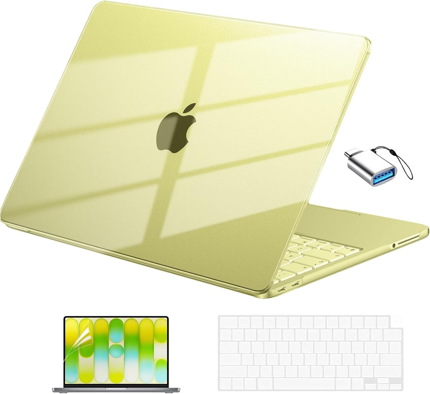 Comprehensive Protection: Sleek style and sturdy protection, includes a matching keyboard cover , versatile usb-c to usb-a adaptors and screen protector to protect your keyboard & screen against spills, scratches, debris, and oil stains