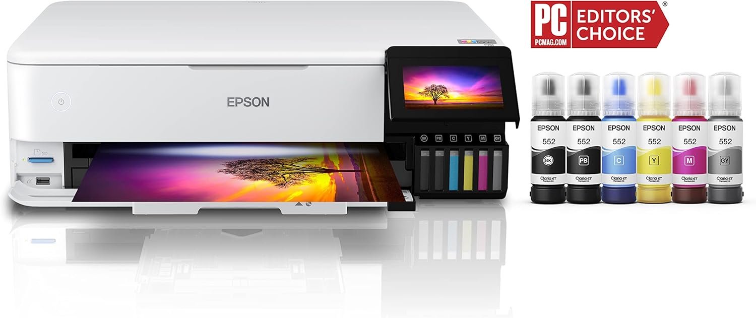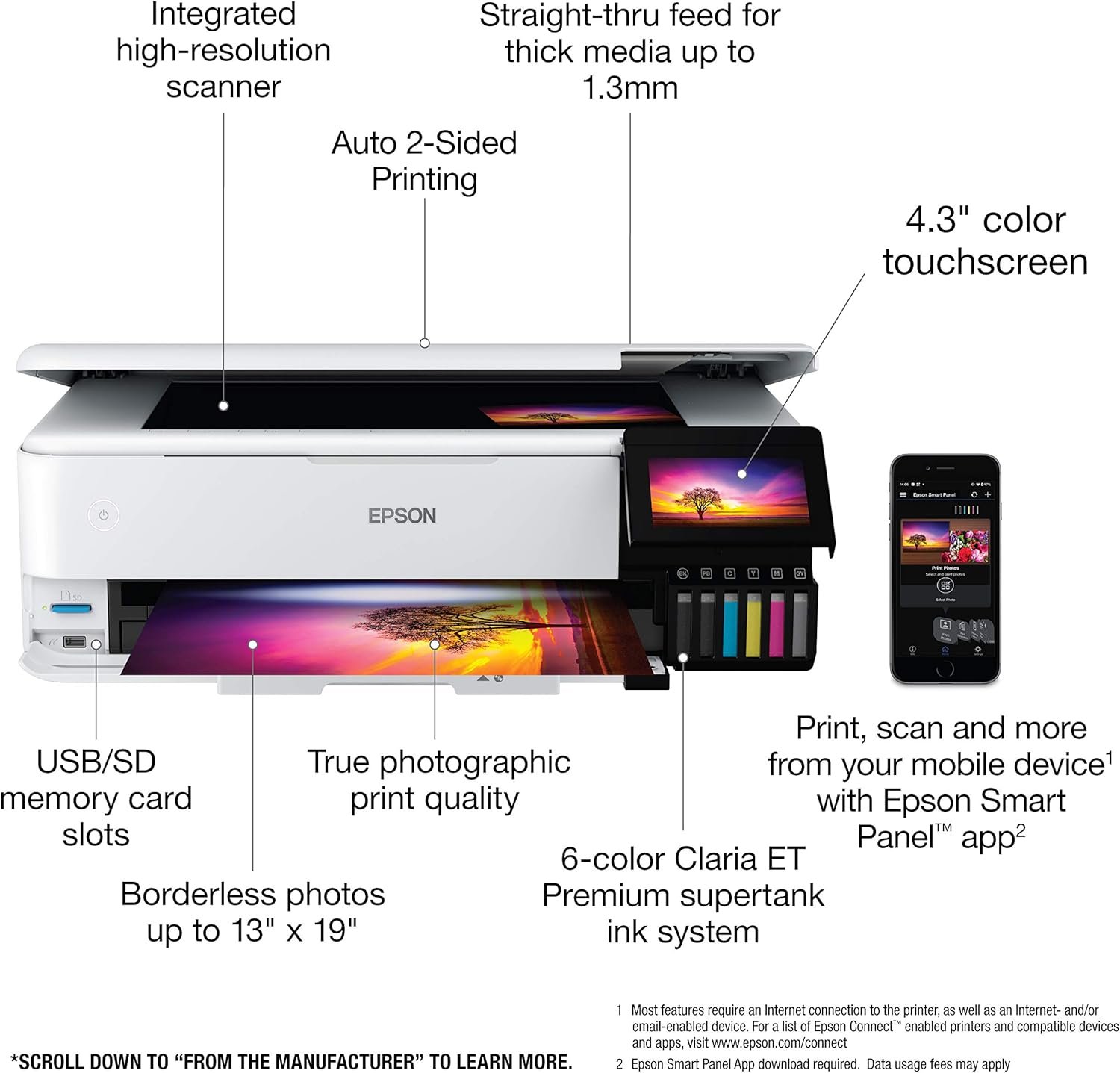 Epson EcoTank Photo ET-8550 Wireless Wide-format Color All-in-One Supertank Printer with Scanner Copier, Ethernet and 4.3-inch Colorfull Touchscreen