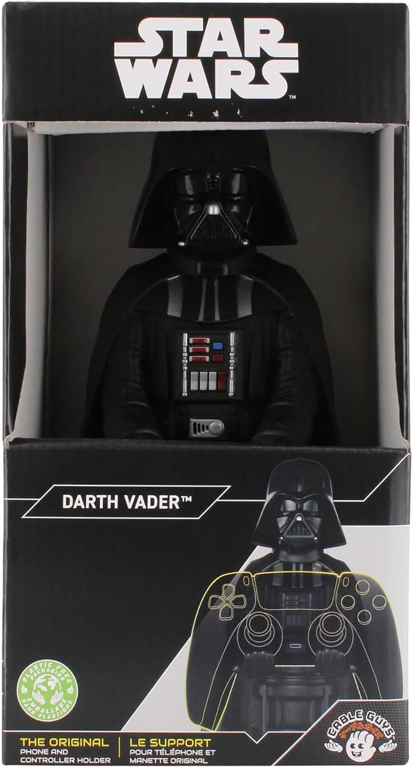 STAR WARS: DARTH VADER – Cable Guys Phone Stand & Controller Holder – Direct from serving the Galactic Empire, it is the iconic Star Wars villain, the master Darth Vader. As part of the immensely popular Cable Guys range, Darth is stood in his strikingly iconic black armor, helmet and mask and will protect or anything you can fit into his hands. Be careful, do not fail him. You and Darth will rule the galaxy together. Approx 8.5″ tall remote control and gaming controller stand / holder. Compatible with most types of smartphones and console controllers, including the next-gen PlayStation 5 DualSense, Xbox Series S/X and all iPhones. It’s the perfect squad mate for any bedroom, office, or lounge. Looking great on its own or when holding your controller or mobile. Cableguys offer a collectible assortment of your favorite characters that have so many uses as gaming table accessories, you’ll wonder what you did without them!