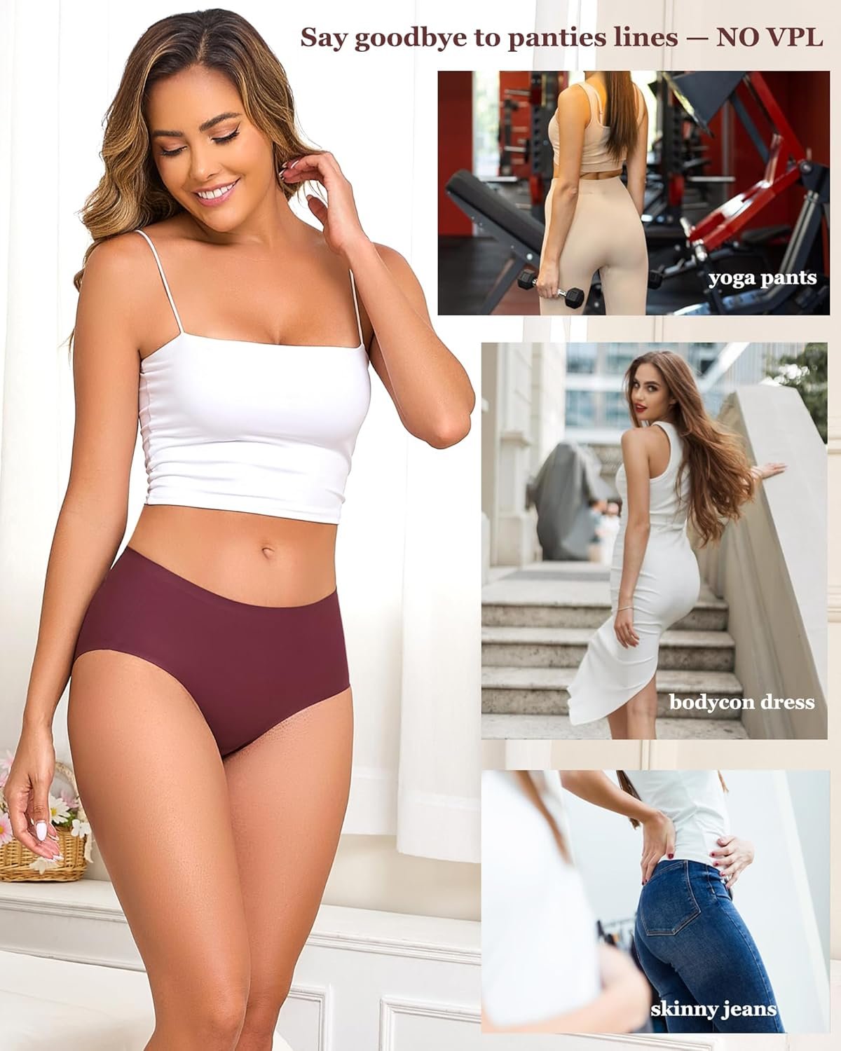 FINETOO 6 Pack Womens Seamless Underwear Full Coverage No Show Hipster Panties Sexy Stretchy Invisible Briefs Bikini Lingerie