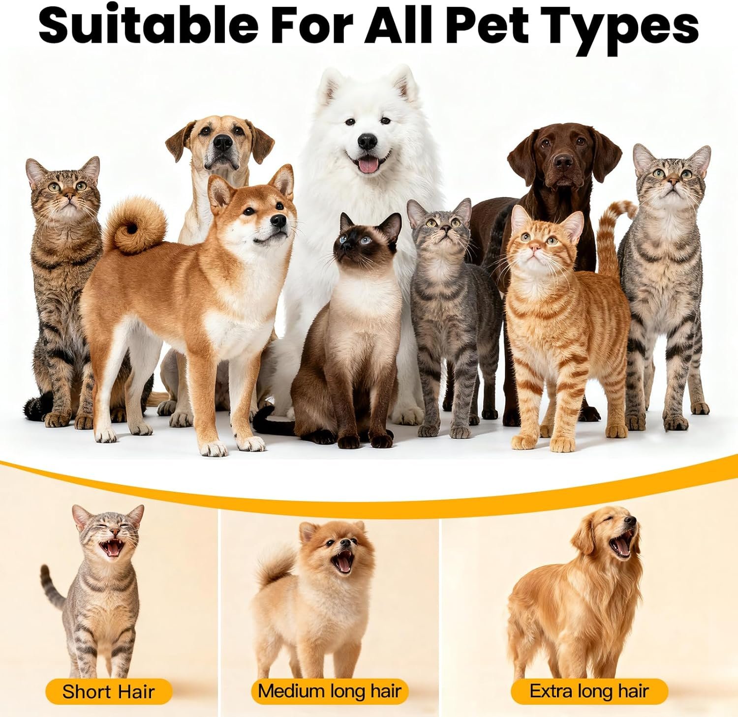 🐾【Portable & Easy Store】Pet vacuum grooming kit with a lightweight 3.7lb body, it’s easy to store and carry, making it the ideal grooming partner for multi-pet households or travel! The dog hair vacuum with a hose and power cord of 10ft, the operating radius is greatly extended, allowing you to move freely in the living room, balcony, or yard, giving your pet a more relaxed grooming experience