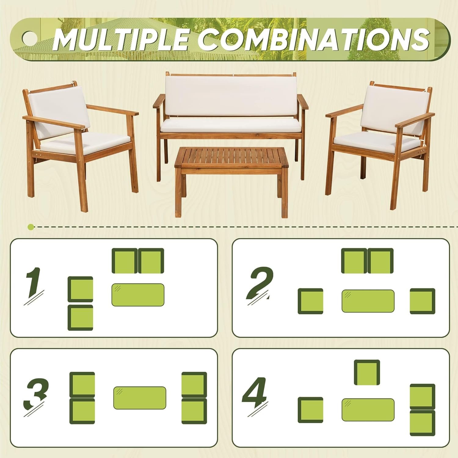 Be the first to review “Flamaker Patio Furniture 4 Piece Outdoor Acacia Wood Patio Conversation Sofa Set with Table & Cushions Porch Furniture for Deck, Balcony, Backyard”