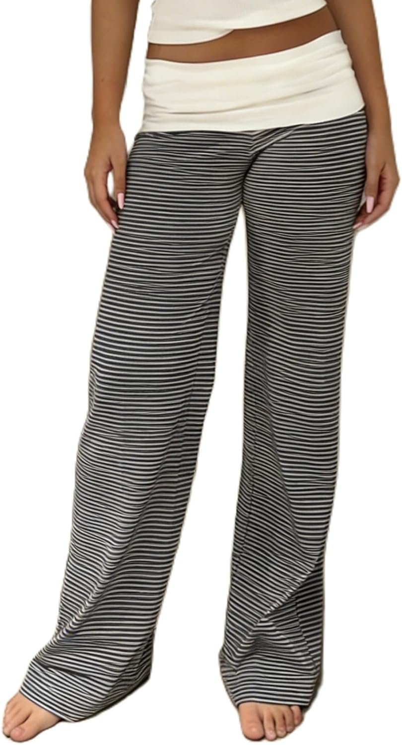 Women’s Fold Over Lounge Pants Low Rise Wide Leg Yoga Sweatpants Stretchy Bell Bottoms Leggings Roll Over Pants
