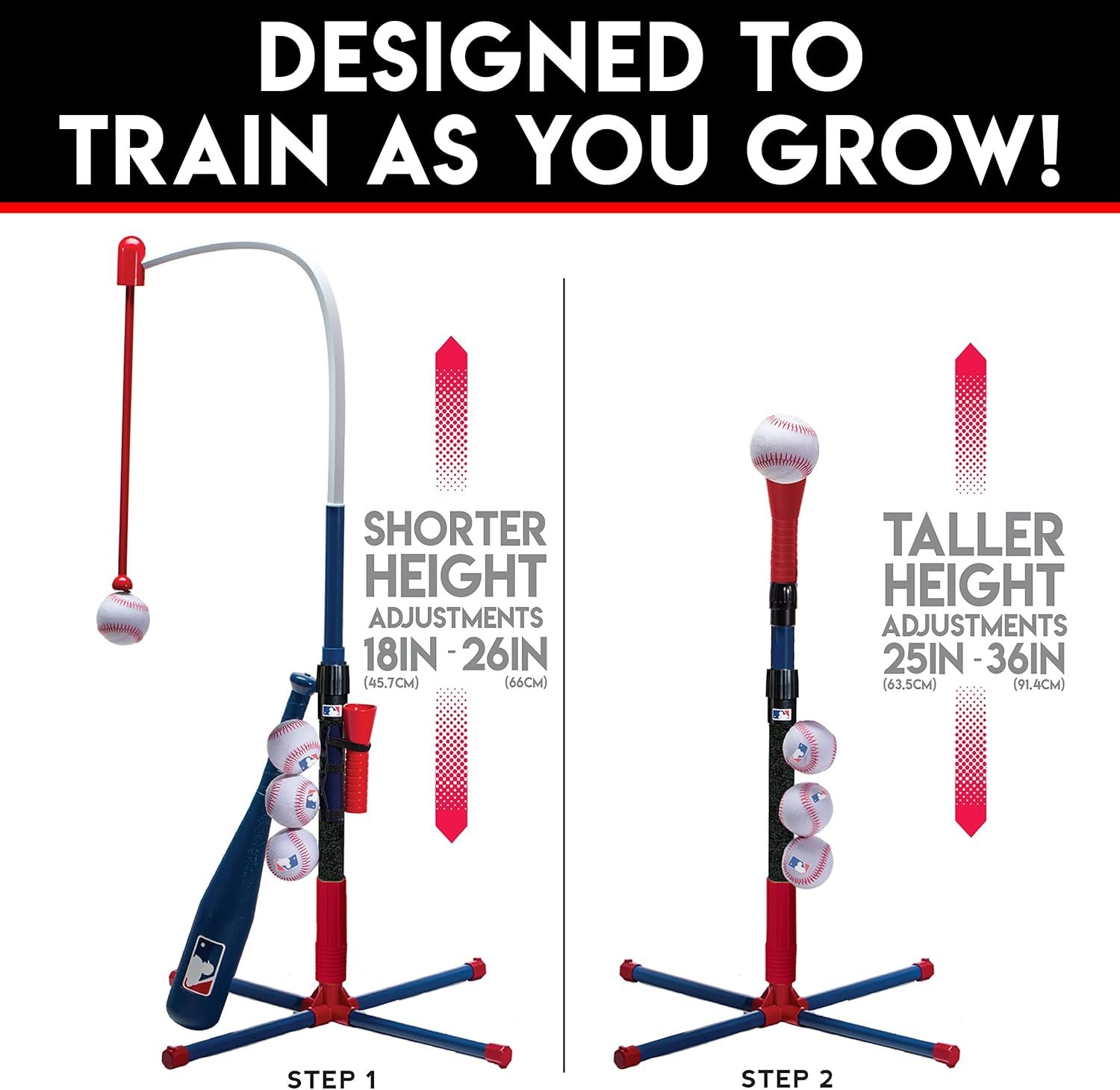 2-in-1 BASEBALL TEE easily converts in seconds! specifically designed to offer a 2-step process that truly trains kids as they grow
