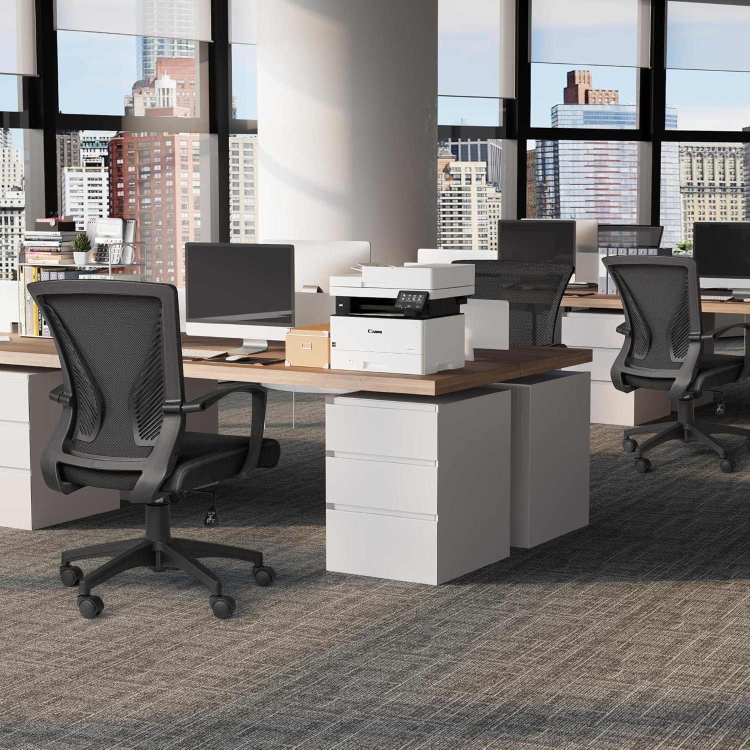 Furmax Office Chair Ergonomic Computer Desk Mesh Chair Mid Back Swivel Lumbar Support with Armrest (1, Black)