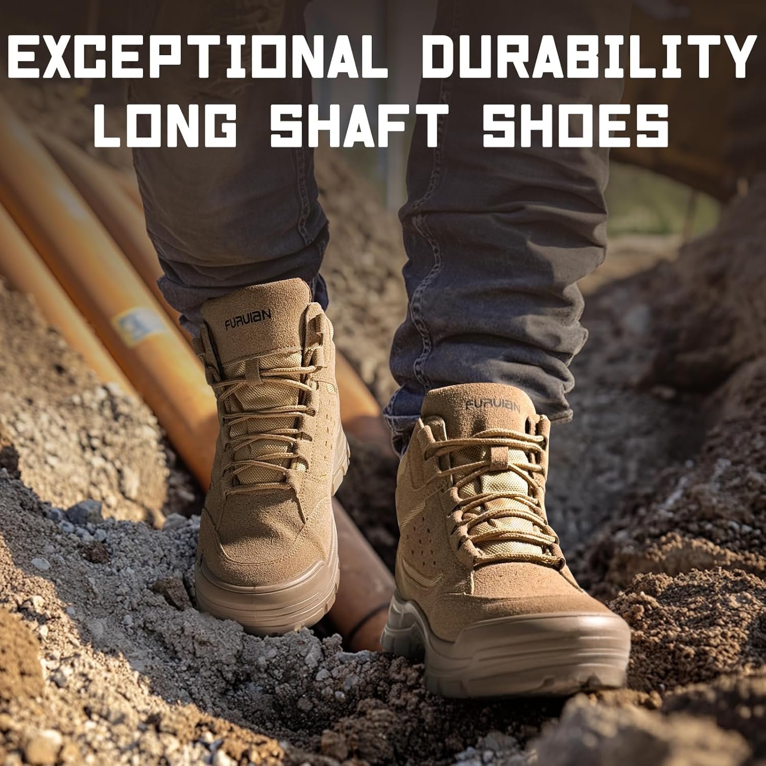 Furuian Steel Toe Boots for Men Women Comfortable Lightweight Work Boots for Men Slip Resistant High Top Steel Toe Safety Shoes Puncture Proof Indestructible Construction Shoes