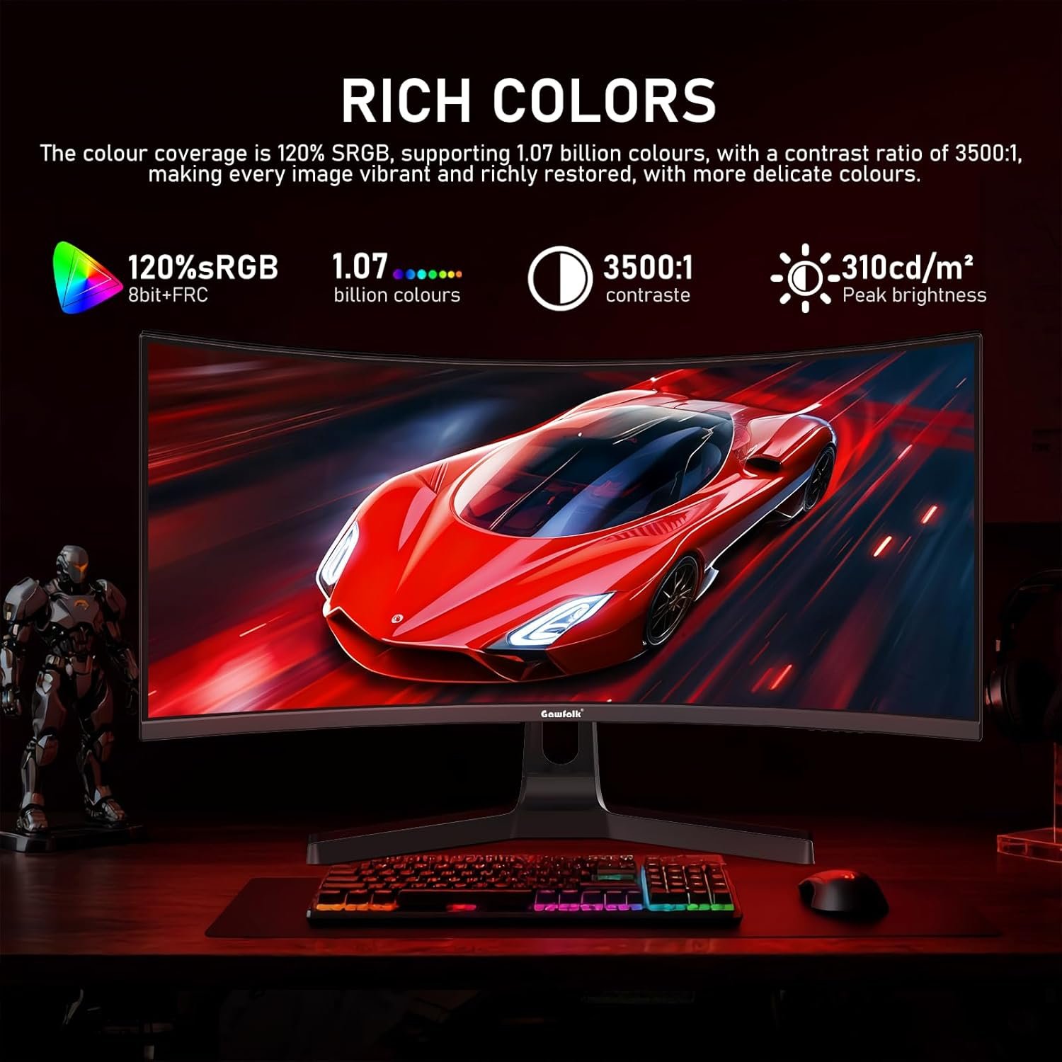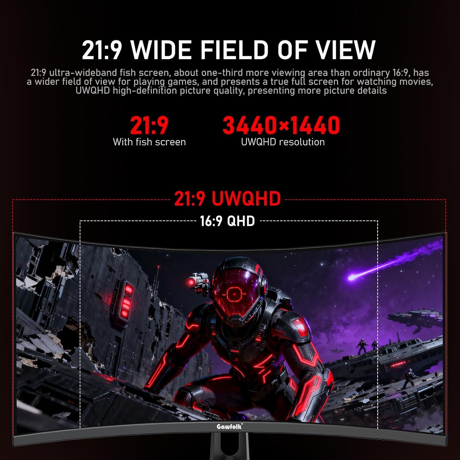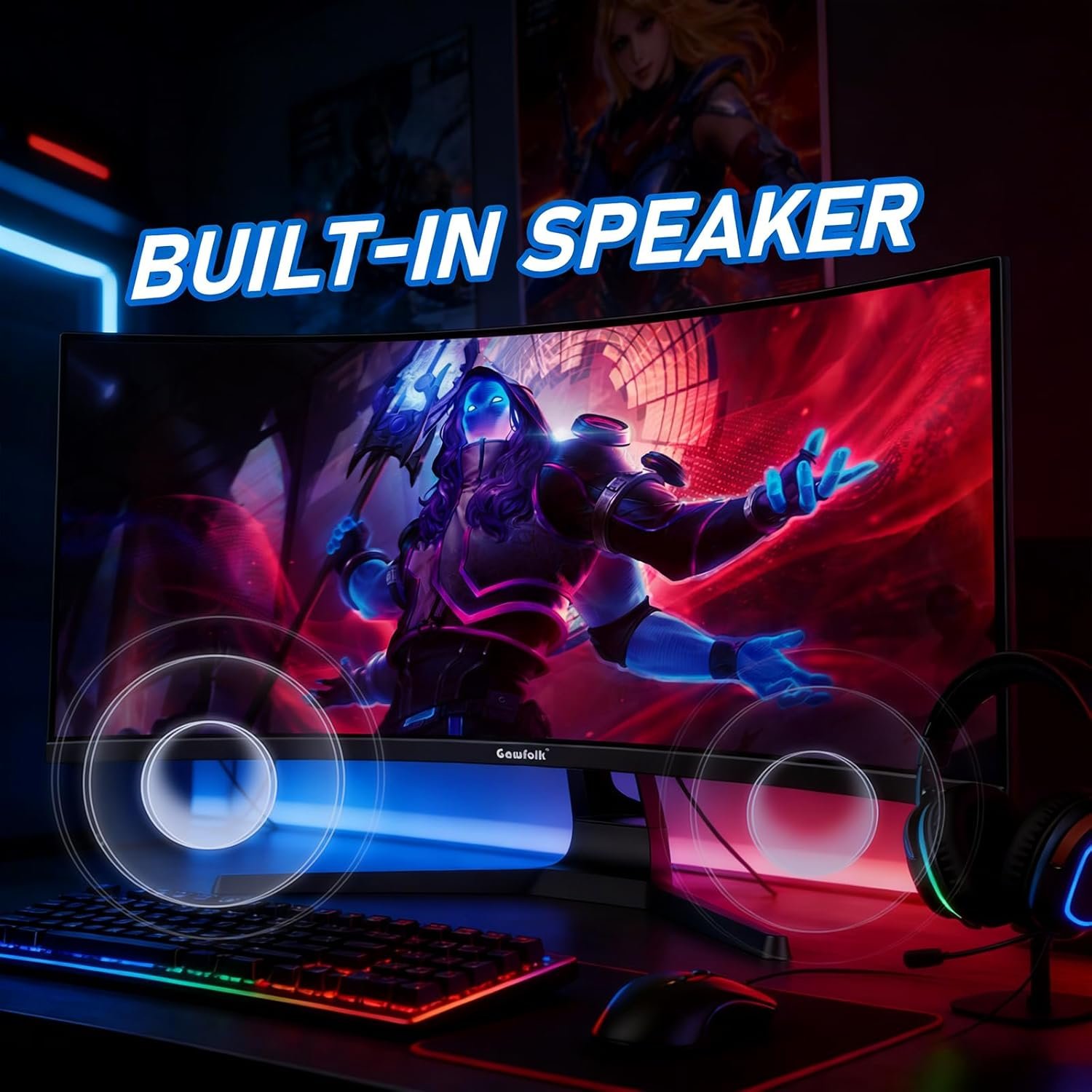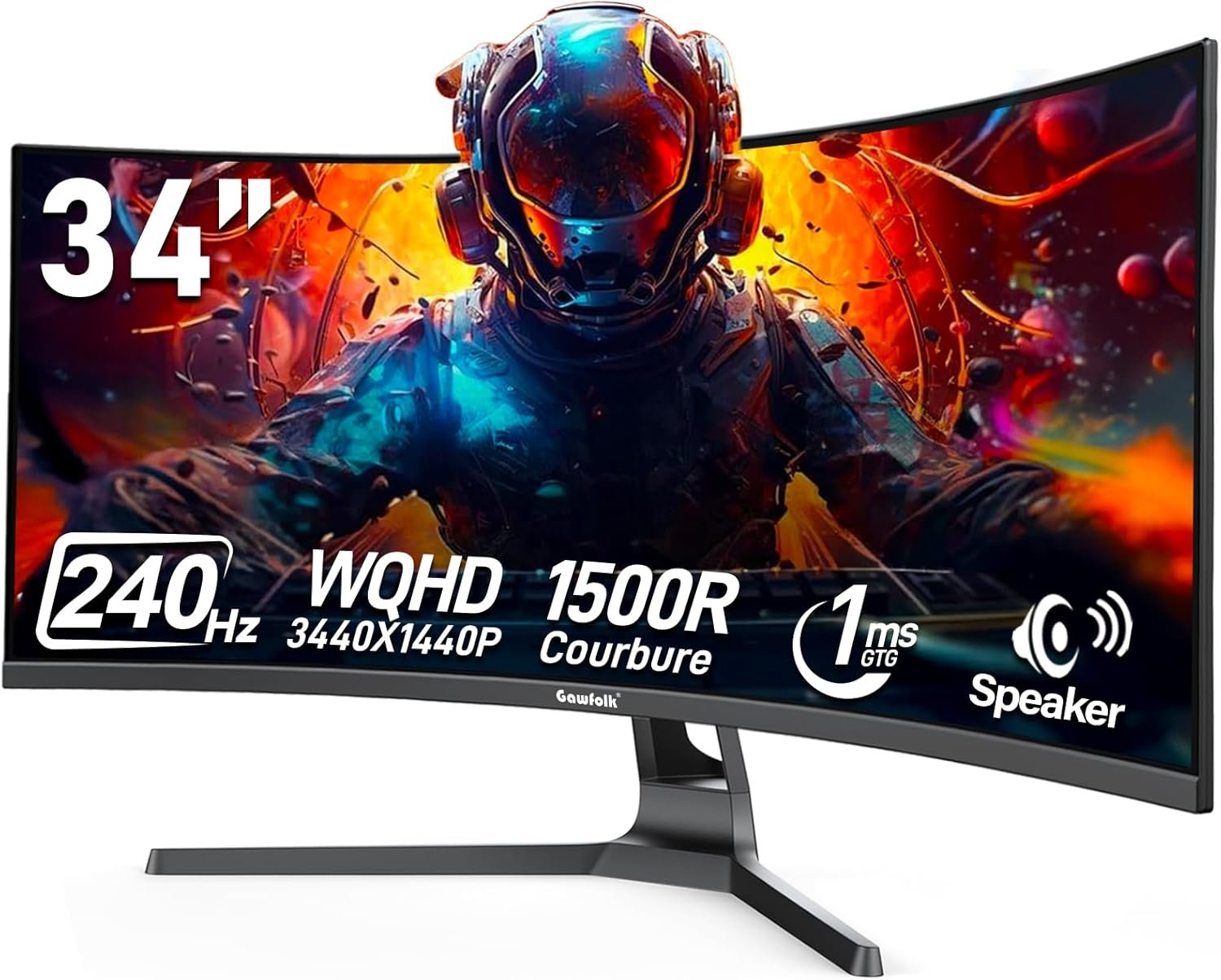 Gawfolk 34 Inch Curved Gaming Monitor, 240Hz Ultrawide PC Monitors Built-in Speakers, UWQHD (3440×1440) 1500R Computer Screen mit FreeSync, HDMI 2.0 & DP 1.4, Wall Mountable