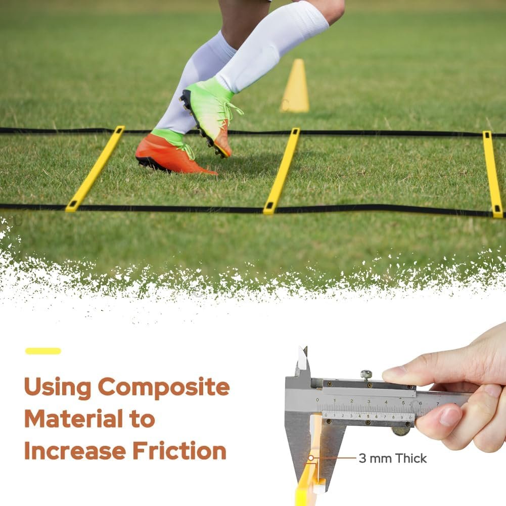 20 Feet 12 Rungs Agility Ladder:The agility ladder comes with 12 sturdy plastic rungs, and the overall length is 20 feet