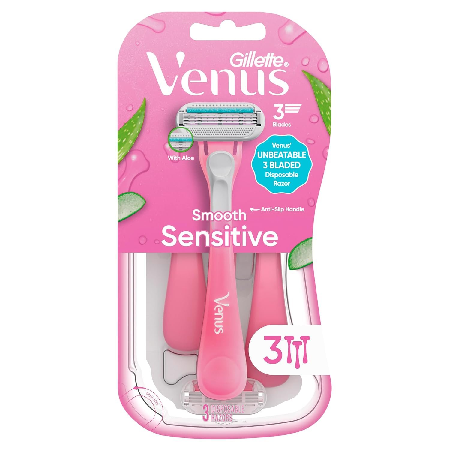 Gillette Venus Sensitive Women’s Disposable Razors – Single Package of 3 Razors