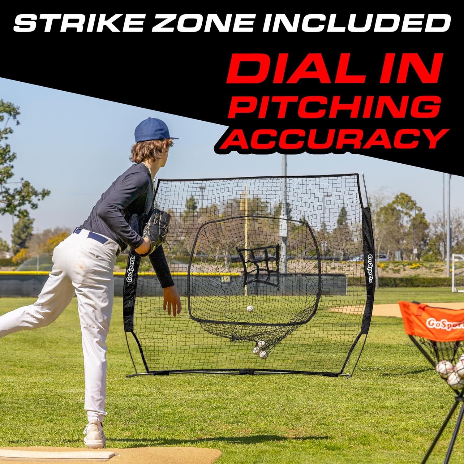 STRIKE ZONE ATTACHMENT: Includes a strike zone target for pitching drills to develop command on the mound