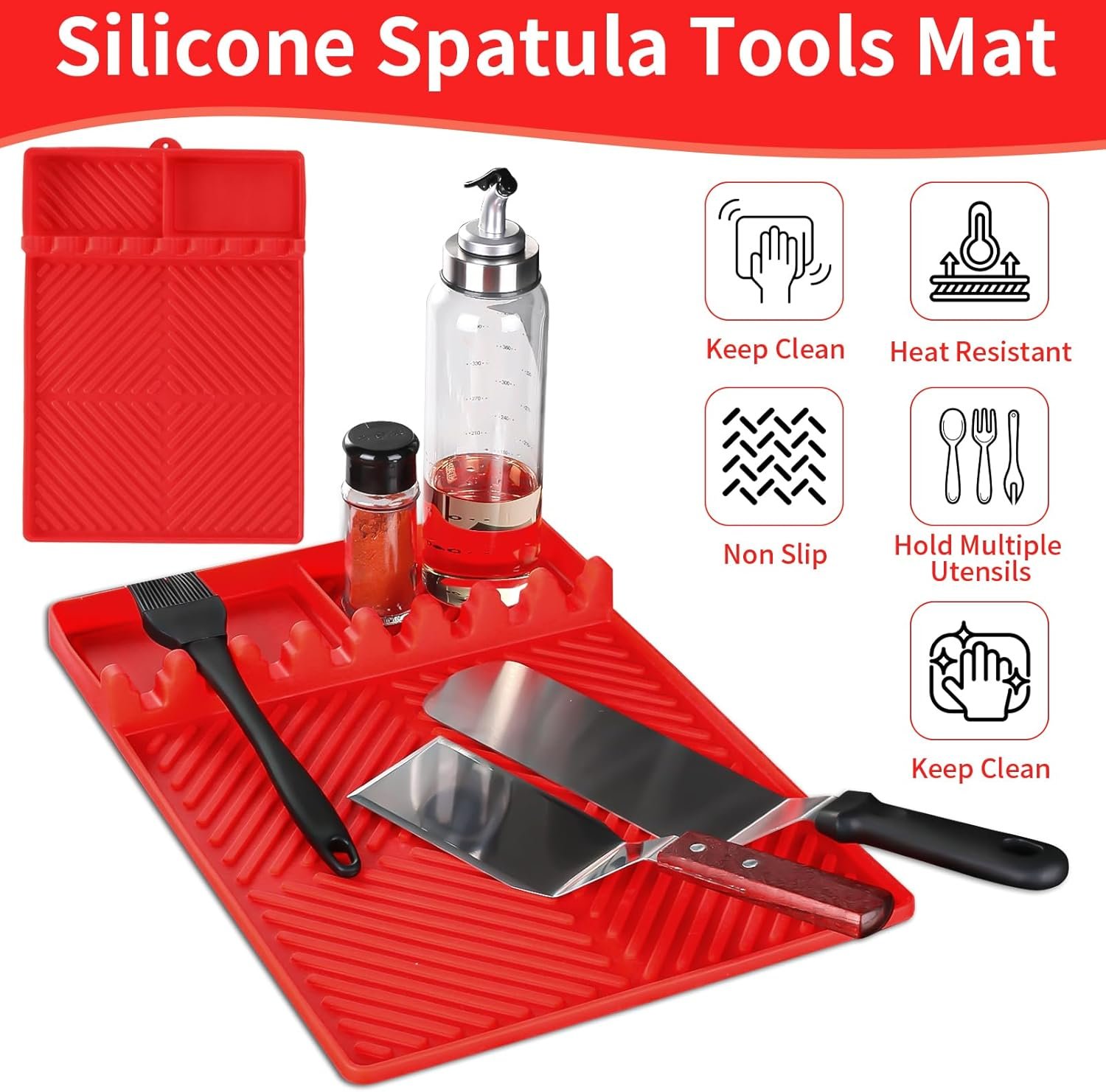 【Versatile and Heat Resistant】- From ladles to spatulas, this silicone mat is a versatile companion for your essential kitchen tools. Its heat-resistant properties make it ideal for use near stoves or as a protective layer for your countertop.