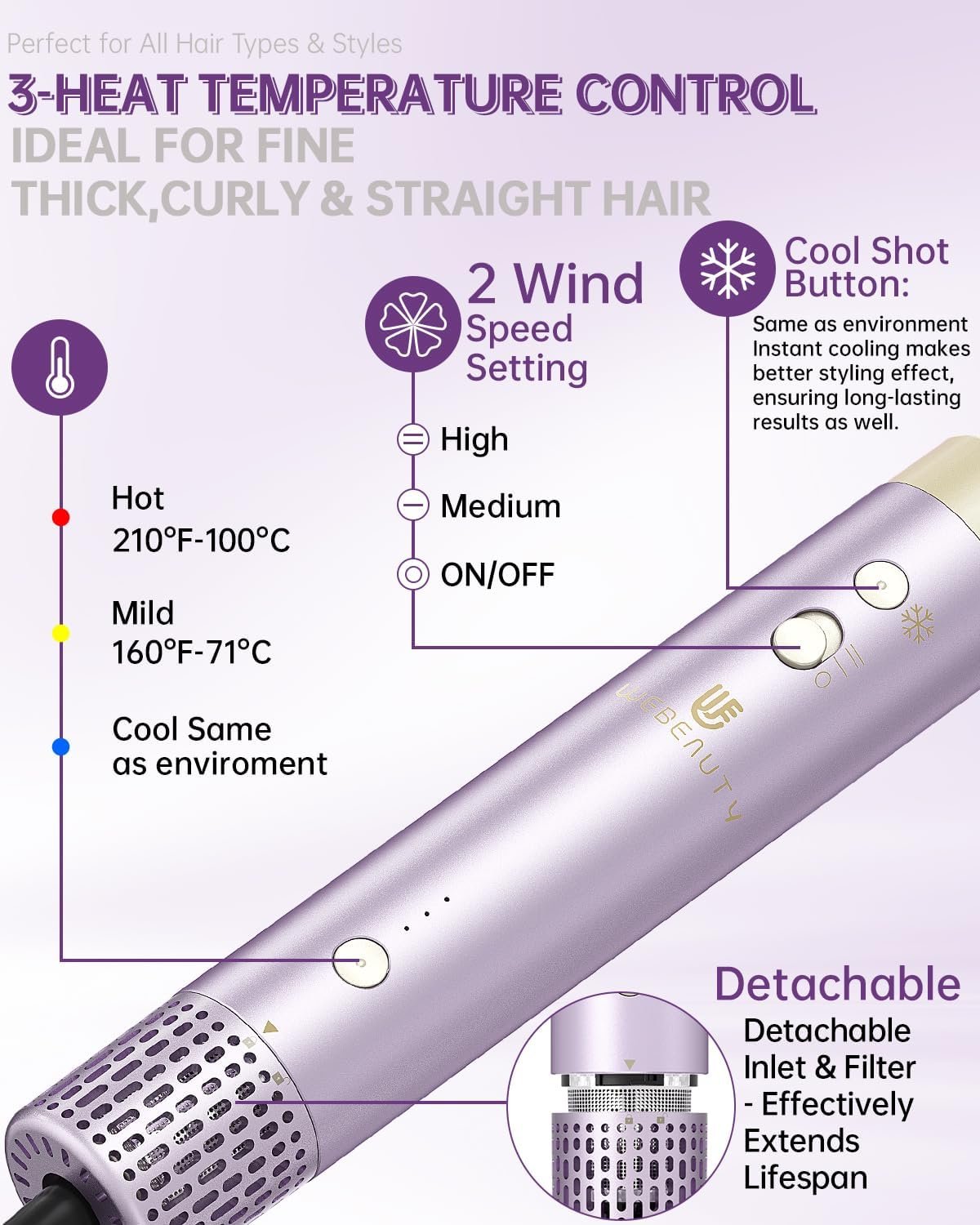 8-in-1 Multi-Functional Styler:Straighten, curl, volumize, and dry—all with one tool. This hot air brush replaces multiple styling devices, saving you time, space, and effort. Perfect for everyday styling or travel.