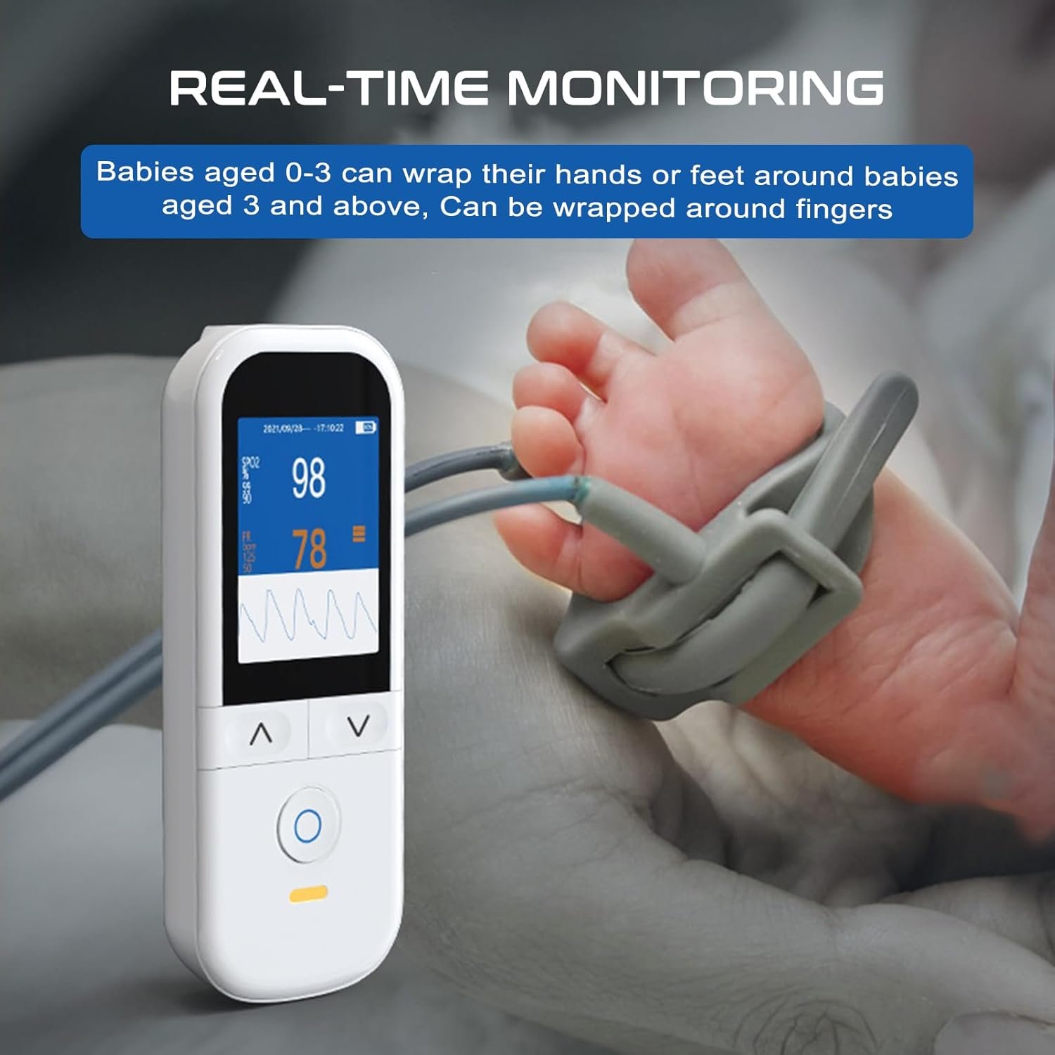 Handheld Pulse Oximeter for Baby and Adults, Fast SpO2 Reading Oximeters Accurate Infants Oxygen Saturation Monitor with Alarm Toddler Adjustable Rechargeable Continuous Monitoring Overnight for Family