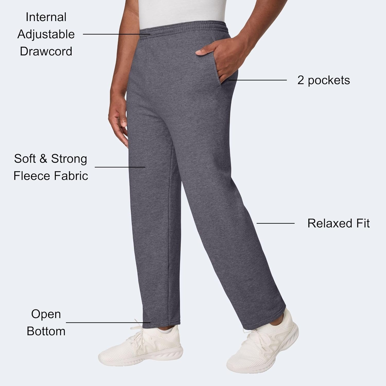 Hanes Men’s EcoSmart Sweatpants, Athletic Lounge Pants with Pockets, Open Hem Bottom, Fleece Pants