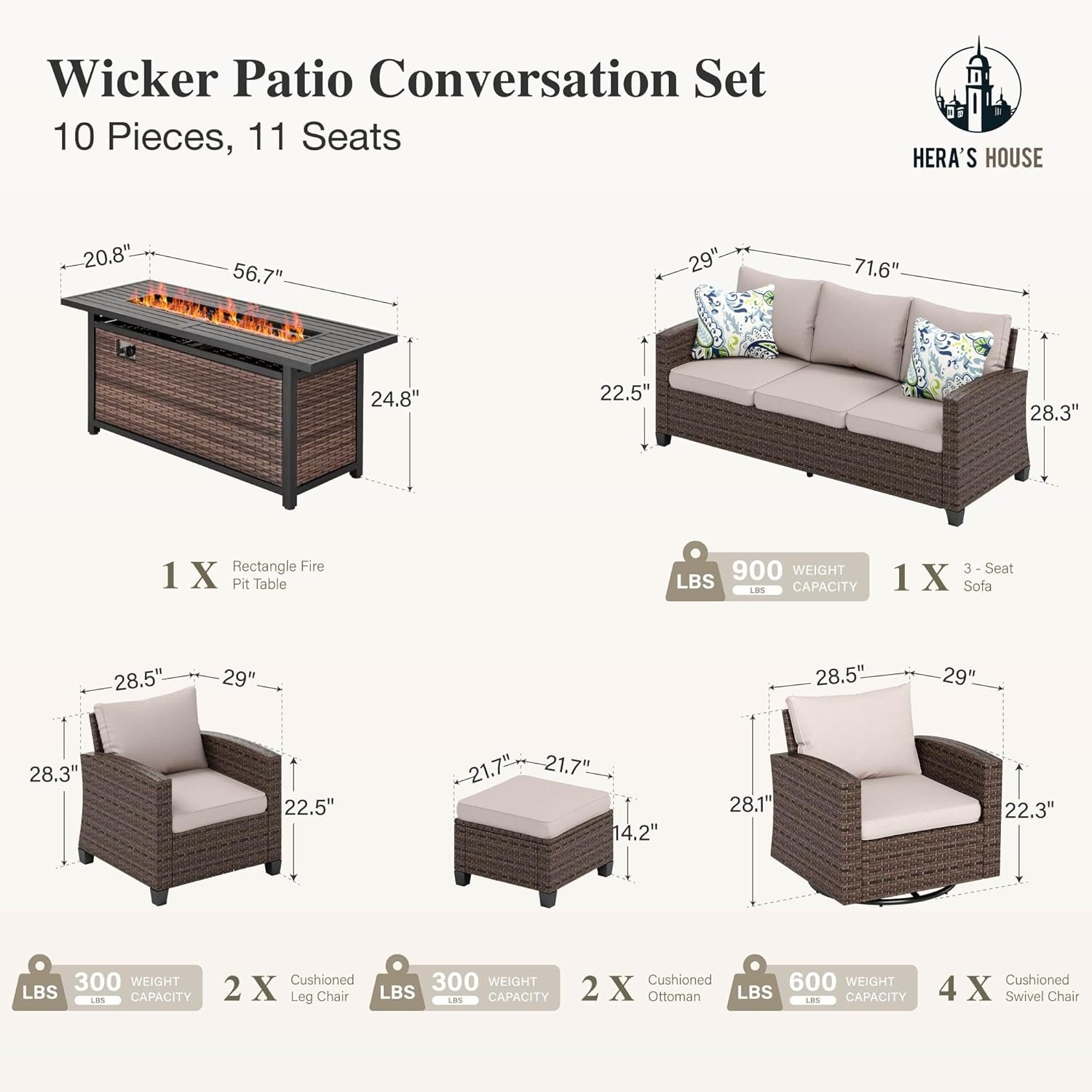 Be the first to review “HERA’S HOUSE Swivel Glider Patio Furniture Set with Fire Pit, Outdoor Wicker Conversation Sets, 8 Pieces Deep Seat Rattan Sofa Sets with Cushions for Deck Backyard Lawn, Beige/Brown”