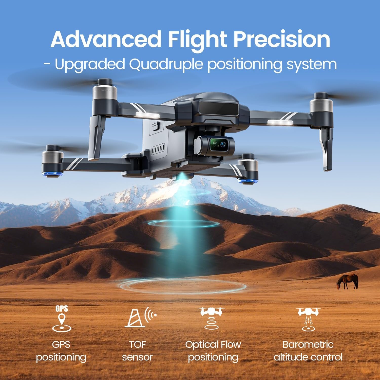 【𝐁𝐞𝐠𝐢𝐧𝐧𝐞𝐫 𝐅𝐫𝐢𝐞𝐧𝐝𝐥𝐲】Novice-ready: one-button takeoff & smart-return, intelligent beginner mode and automatic altitude limits make early flights stress-free. Multi-sensor safety (TOF + GPS + optical flow positioning) enhances low-altitude stability, reducing loss-of-control and collision risk—so newcomers can fly this drone with camera confidently.
