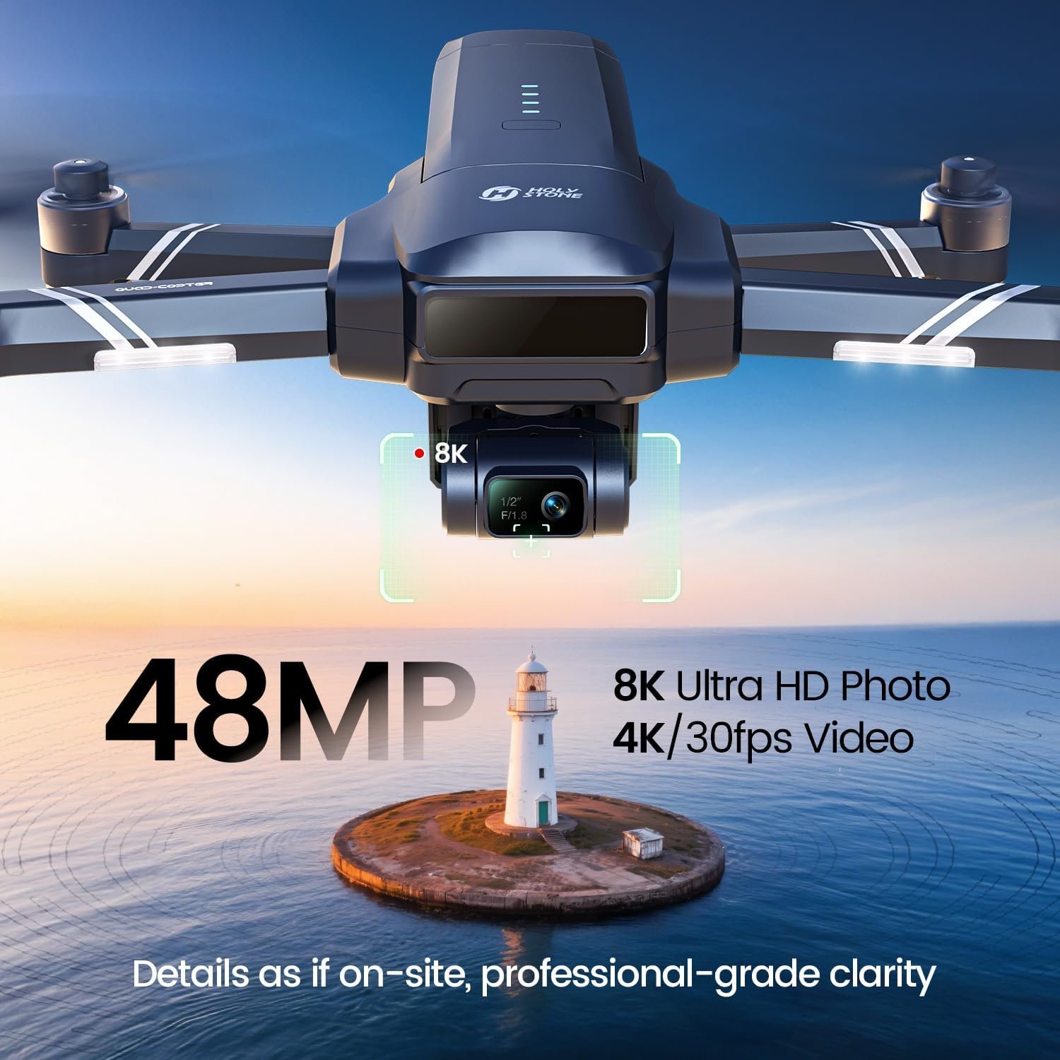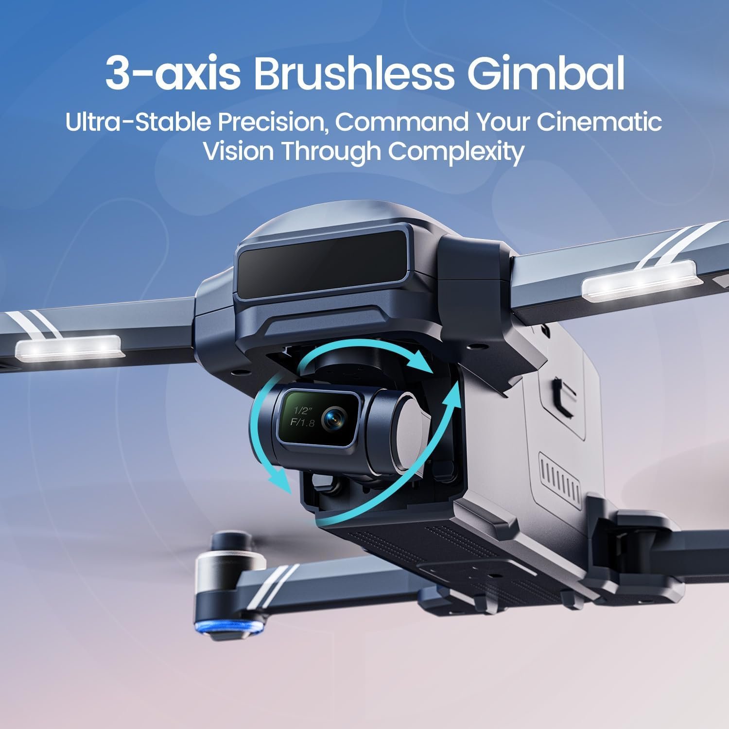 Holy Stone Sentinel HS600D 3-Axis Gimbal Drone with Camera for Adults, Professional 8K Photo, Level-6 Wind Resistance, 6KM Transmission, 80-Min Flight, Smart Track, Auto Return & Beginner Mode