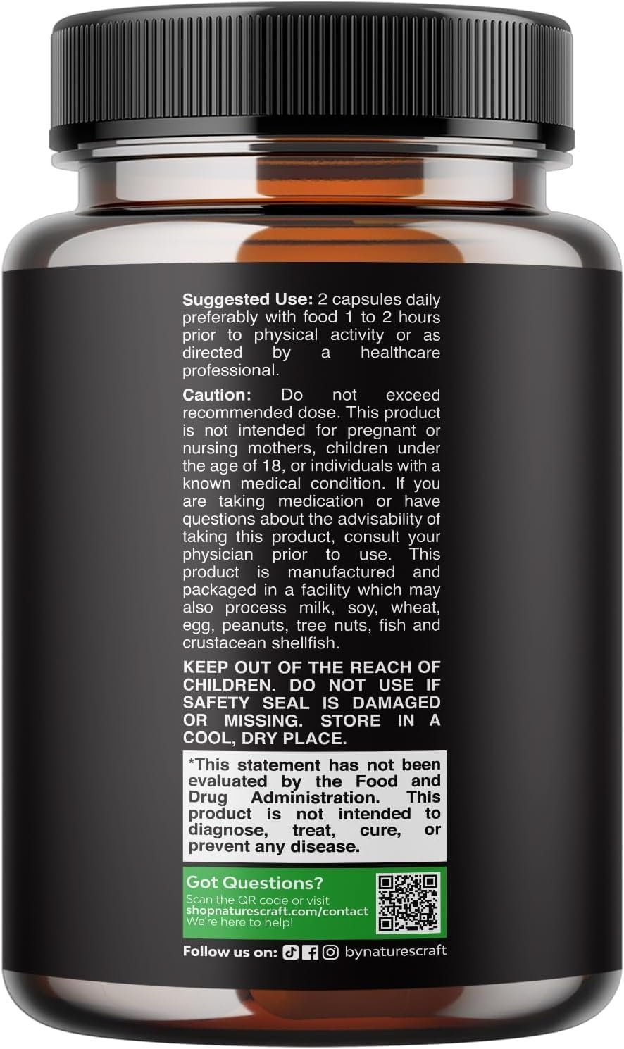 HOW TO USE & IMPORTANT WARNINGS – Take two horny goat & black maca complex capsules with food or as directed by your healthcare provider. Consult a doctor before use if you have heart conditions, high blood pressure, or are on medication. Not for individuals under 18.