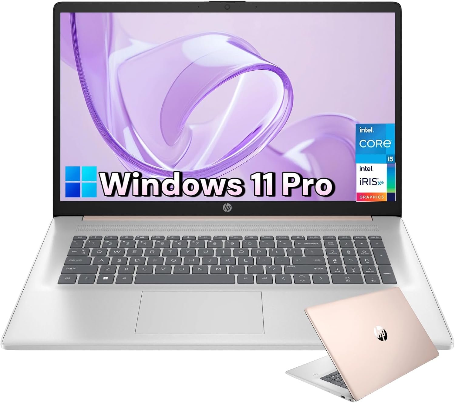 HP 17t Touchscreen Laptop Computer – 17.3′ HD Anti-Glare Display, Intel Core i5-1335U, Intel Iris Xe Graphics, 16GB RAM + 512GB SSD, Wi-Fi, Webcam, HDMI, Windows 11 Pro, Rose Gold