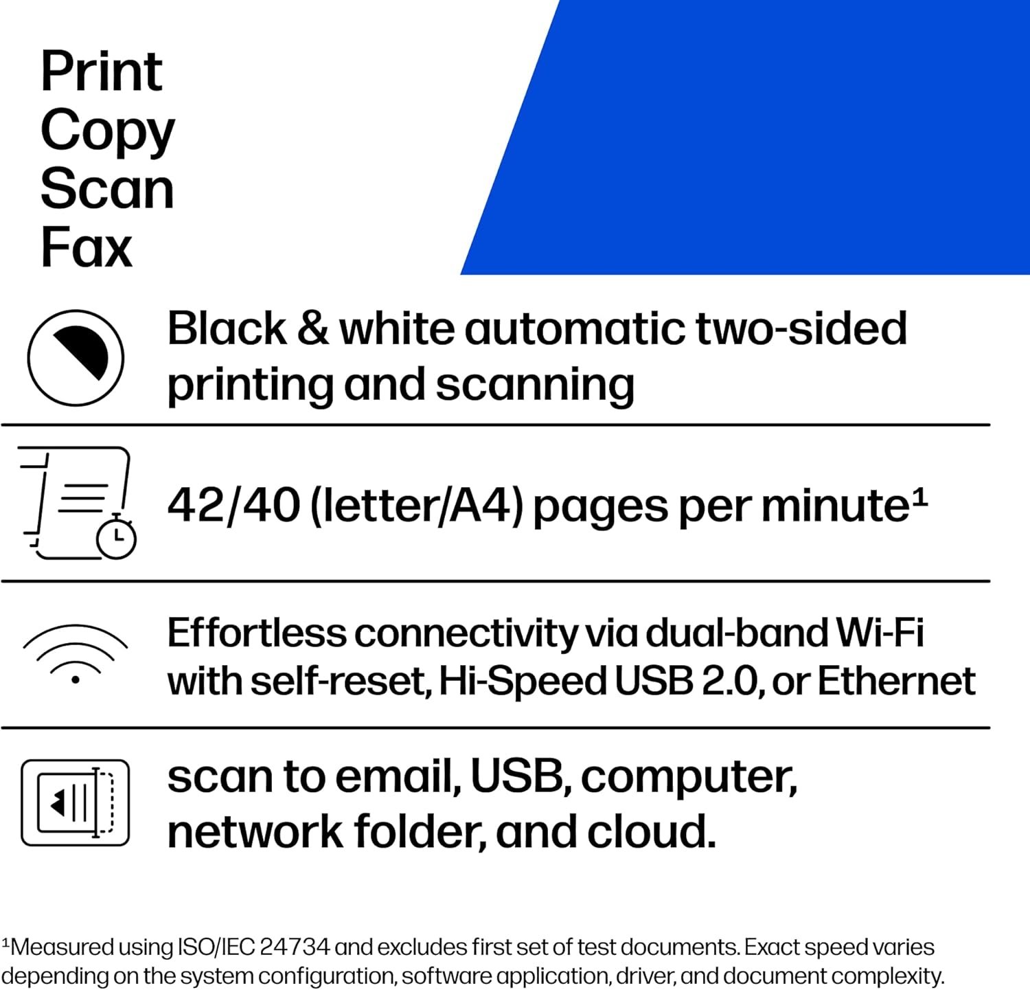 BLAZING FAST PRINT SPEEDS – Up to 42 black-and-white pages per minute single-sided