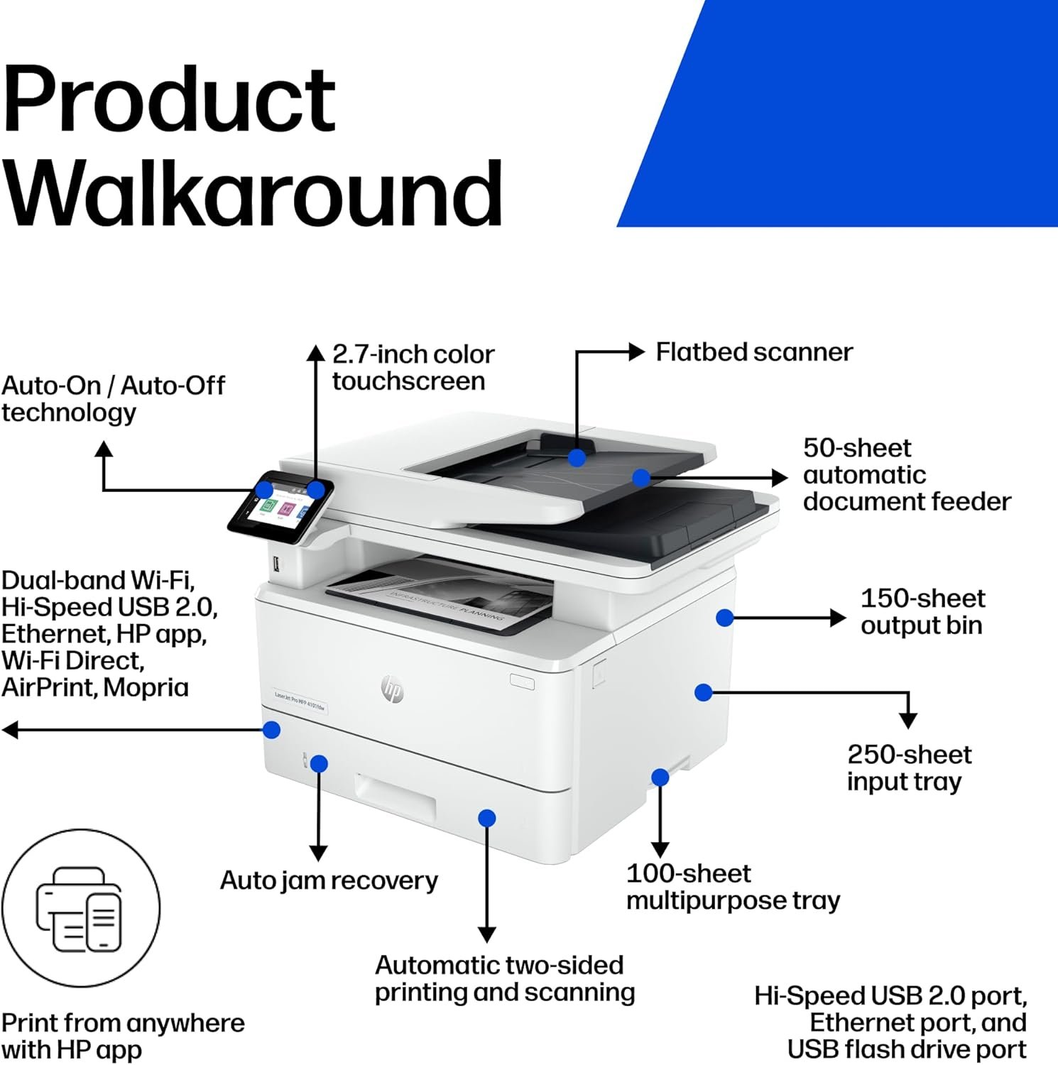 HP Laserjet Pro MFP 4101fdw Wireless Black & White All-in-One Laser Printer, Scanner, Copier, Fax, Best-for-Office (2Z619F)