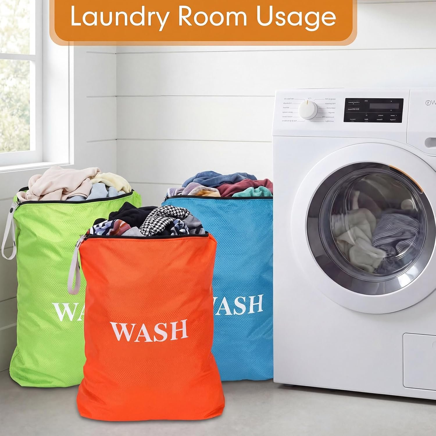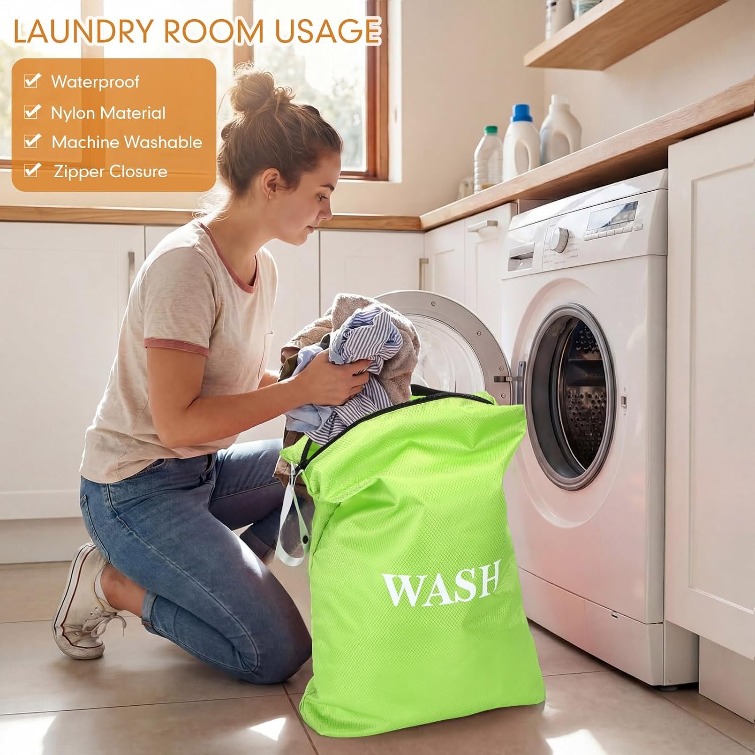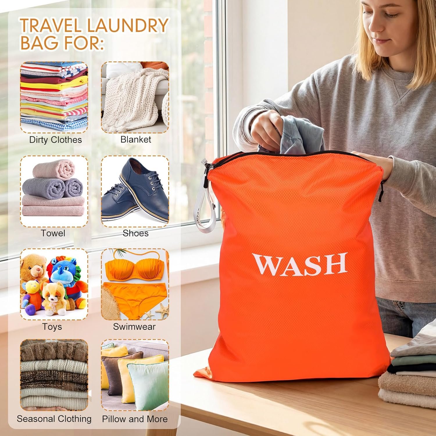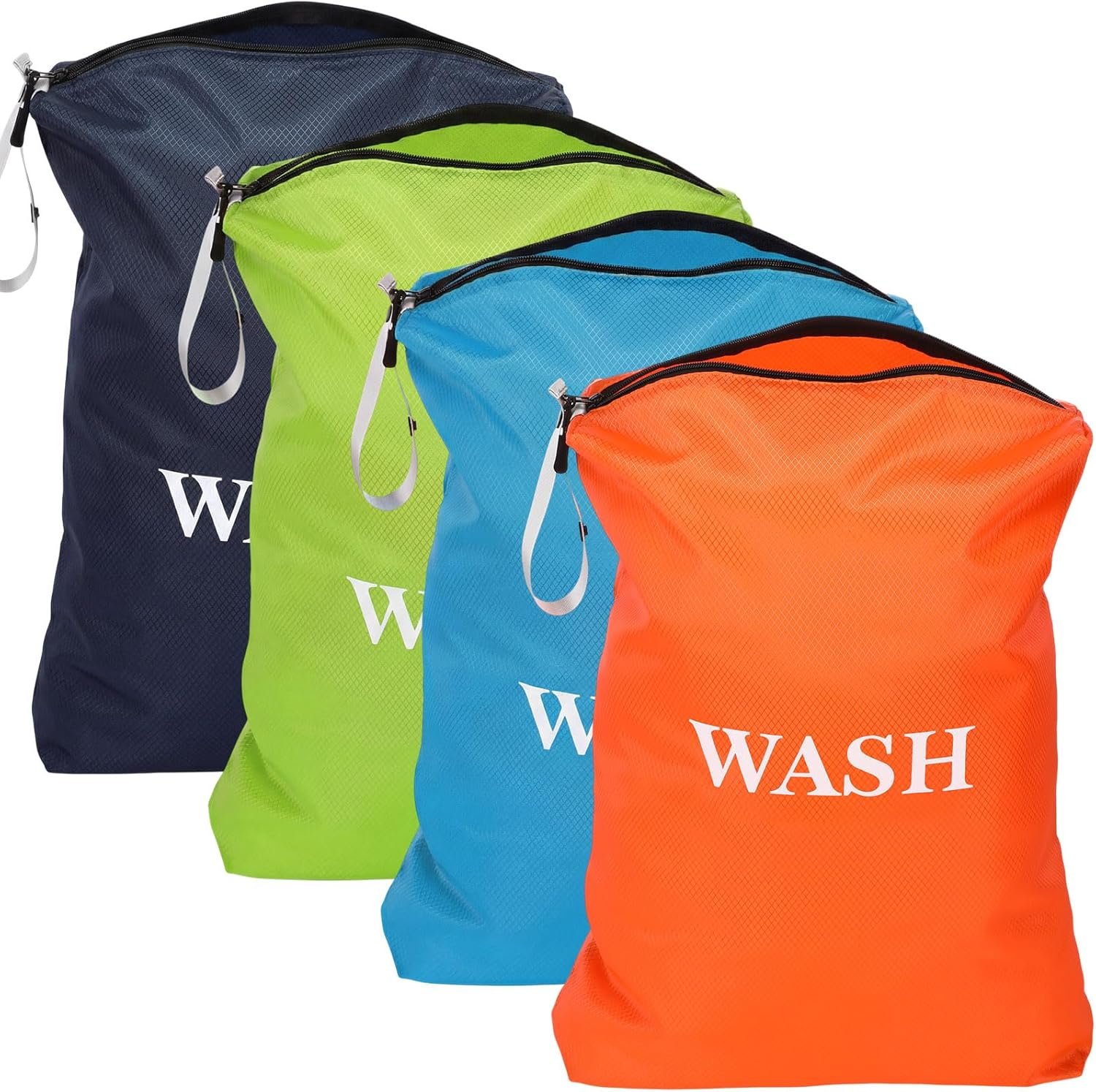 Hsei 4 Pcs Travel Laundry Bags Bulk 22 x 14 Inch Washable Waterproof Wet Dry Bag for Dirty Clothes Gym Foldable Organizer with Zipper Travel Accessories for Swimming Yoga Bathing Suit Workout