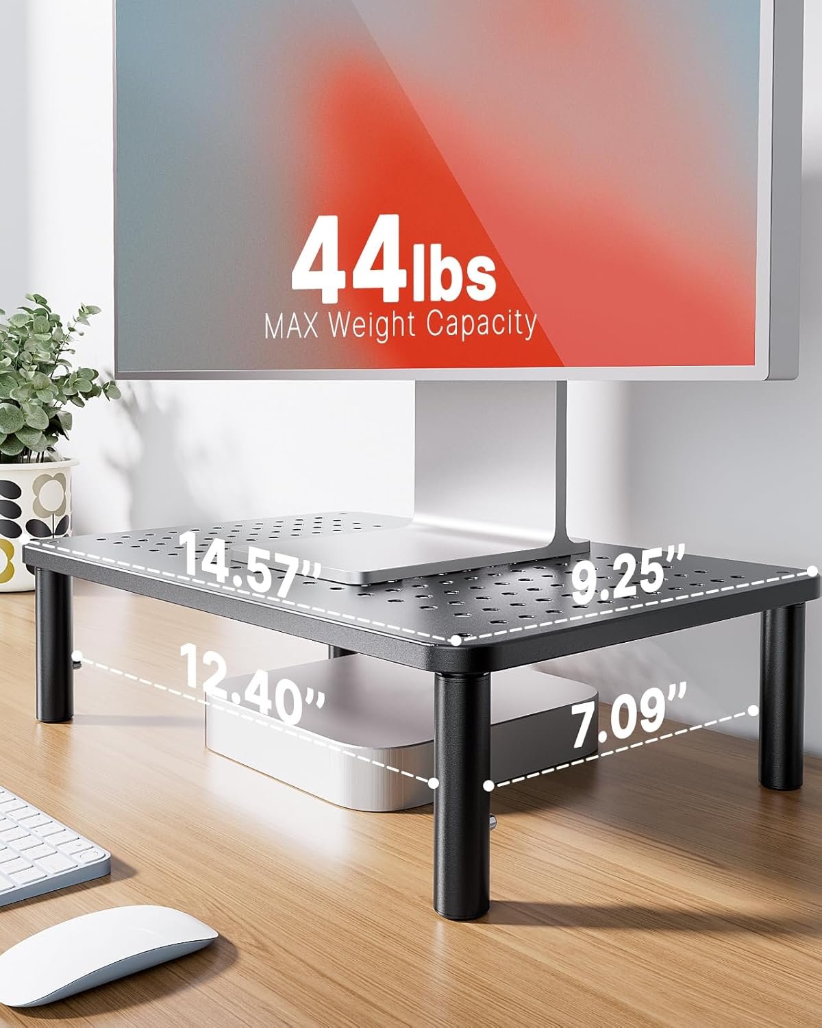 DESKTOP ORGANIZER: This computer monitor stand provides 12.40” x 7.09” storage space underneath the platform to organize office supplies. Stack two monitor stands together to double the functionality of your workspace.