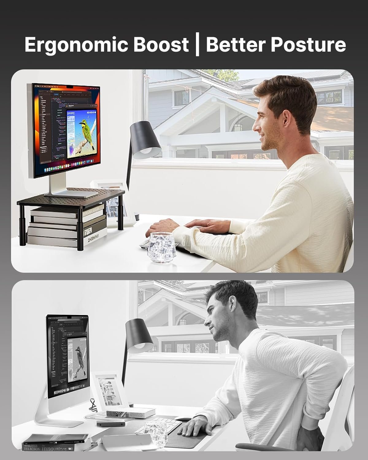 EFFECTIVE HEAT DISSIPATION: The monitor riser is made of powder-coated steel with a ventilated platform designed to improve heat dissipation. The ventilation helps to keep your laptop cooler and avoid overheating.