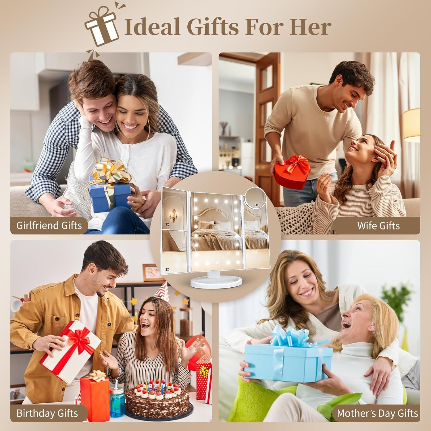 Sleek, Compact Design: With a modern finish, stable base, and foldable trifold design, this vanity mirror looks elegant on any vanity while staying compact and easy to store.Ideal for Valentine’s Day, Mother’s Day, birthdays, anniversaries, Christmas, or just because. Functional yet beautiful, HUONUL makeup mirror vanity with lights is a thoughtful gift for makeup lovers, moms, wives, girlfriends, or anyone ready to upgrade from a cheap, flimsy mirror.