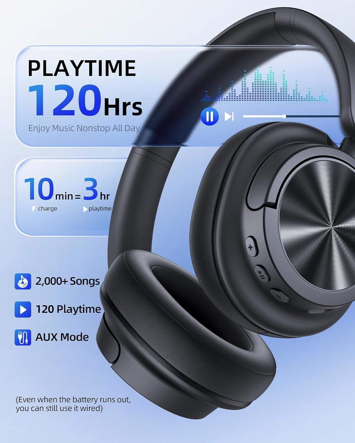 120H All-Day Endurance and Comfort: The H1 Noise canceling headphones deliver up to 120 hours of listening on a single charge, while a 10-minute fast charge provides up to 3 hours of playback for travel, commuting, or multi-day use. Over ear headphones feature a pressure-relieving headband and slow-rebound memory foam ear cushions that evenly distribute weight for long-lasting wear, even during extended use, balancing battery life and comfort, ideal for office, commuting, and long flights.
