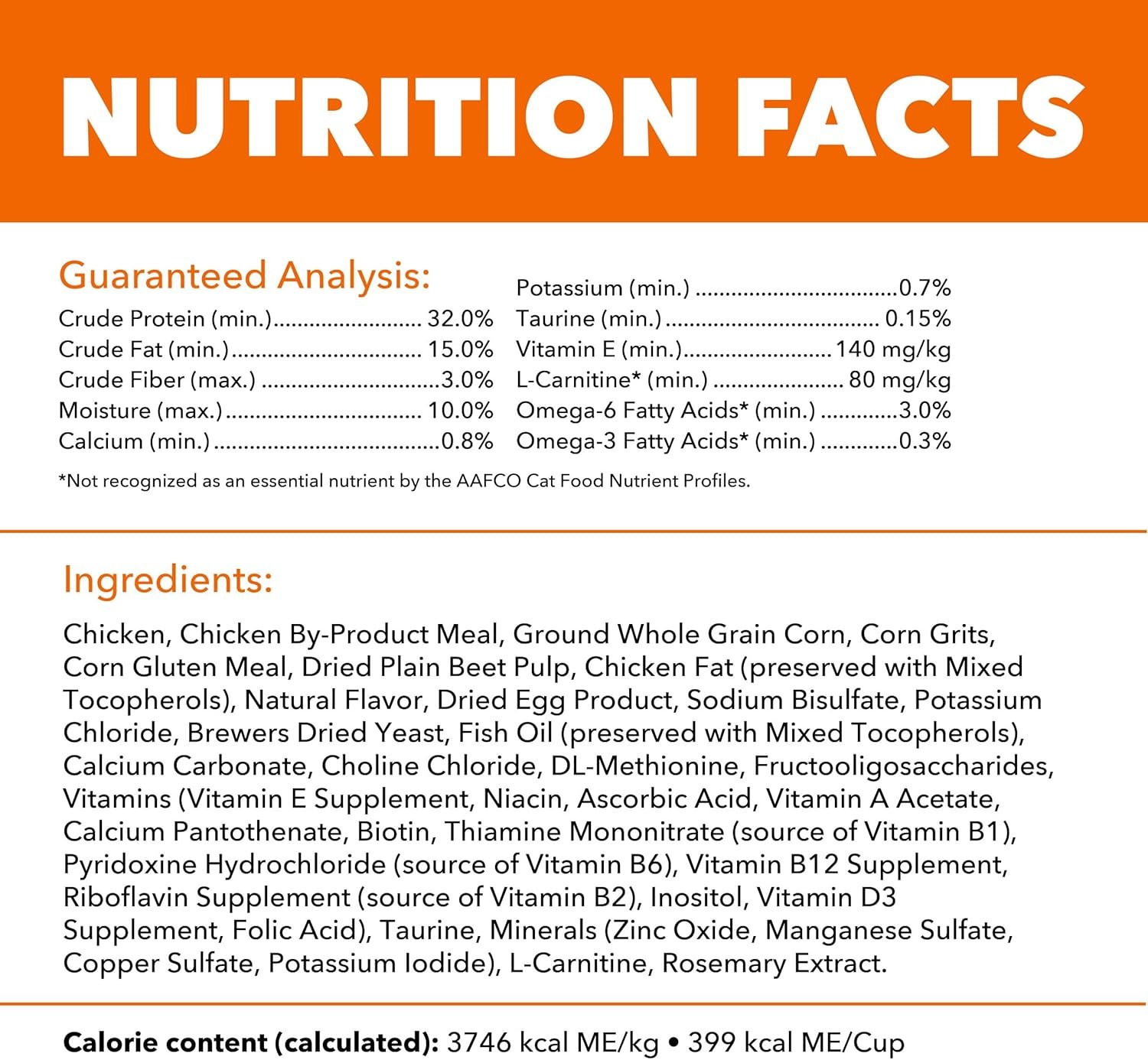 Veterinarians recommend IAMS healthy cat food. This cat kibble dry food uses 80 years of science to carefully craft recipes with high-quality ingredients. These recipes provide 100% complete and balanced nutrition tailored to your cat’s life stage. The Proactive 5 health benefits for IAMS Healthy Adult diet focus on five key areas – healthy muscles, energy, digestion, immune system, and skin & coat. This wholesome, tasty cat food recipe is made with real chicken as the #1 ingredient, along with essential nutrients, such as potassium and calcium, which help support a healthy heart. As an added benefit, a specialized fiber blend & prebiotics help nourish the intestinal cells and improve the absorption of nutrients. This recipe is designed to help your cat achieve optimal stool in 10 days. IAMS Proactive Health Healthy Adult contains no fillers or artificial flavors; ingredients are natural as defined by the Association of American Feed Control Officials (AAFCO). Help keep your cat healthy, happy, and playful for life with tailored cat food nutrition from IAMS. This pet food is a smart everyday meal for pet owners, cat owners, and cat parents who want to support long-term cat health. It delivers complete nutrition in a convenient daily feeding solution.
