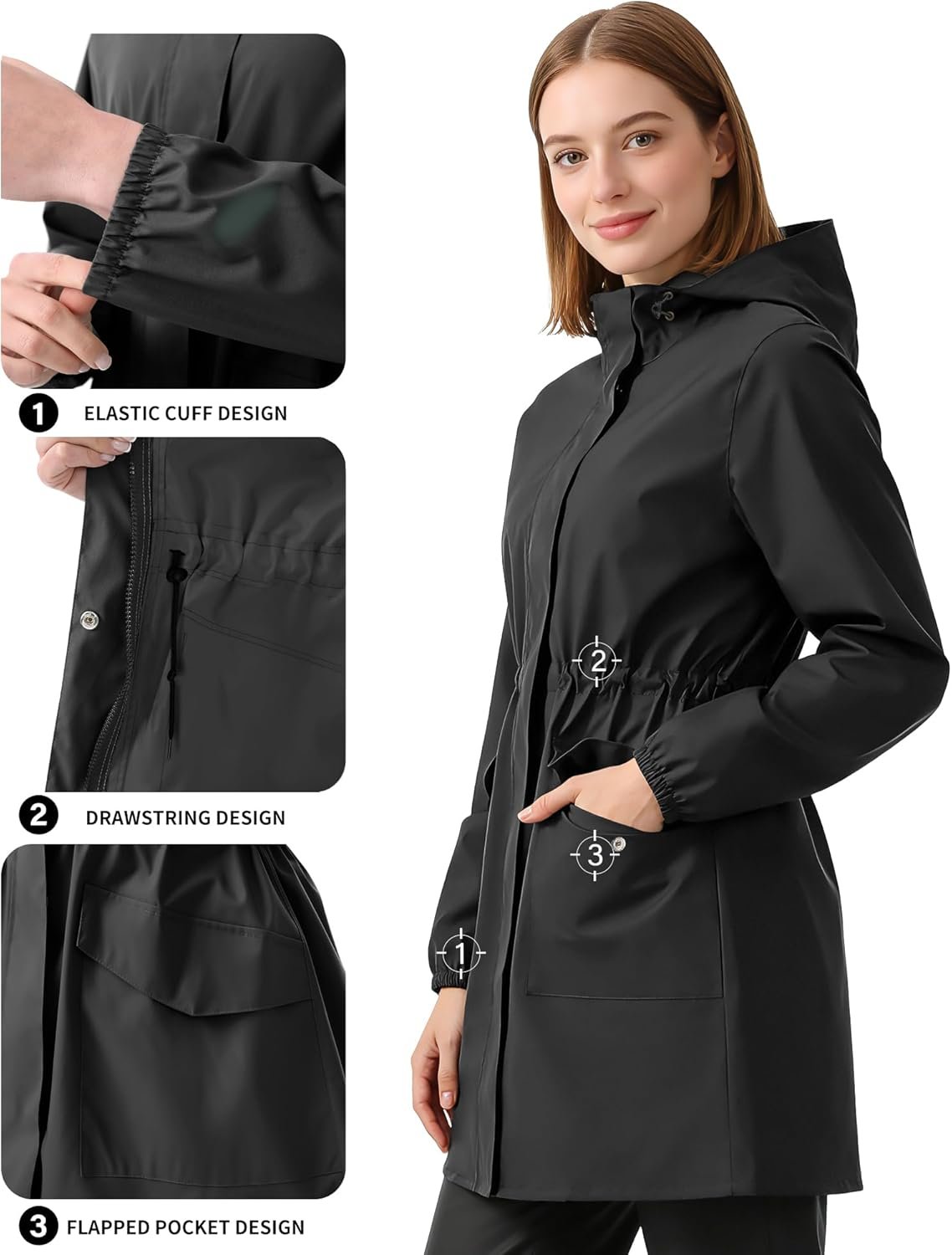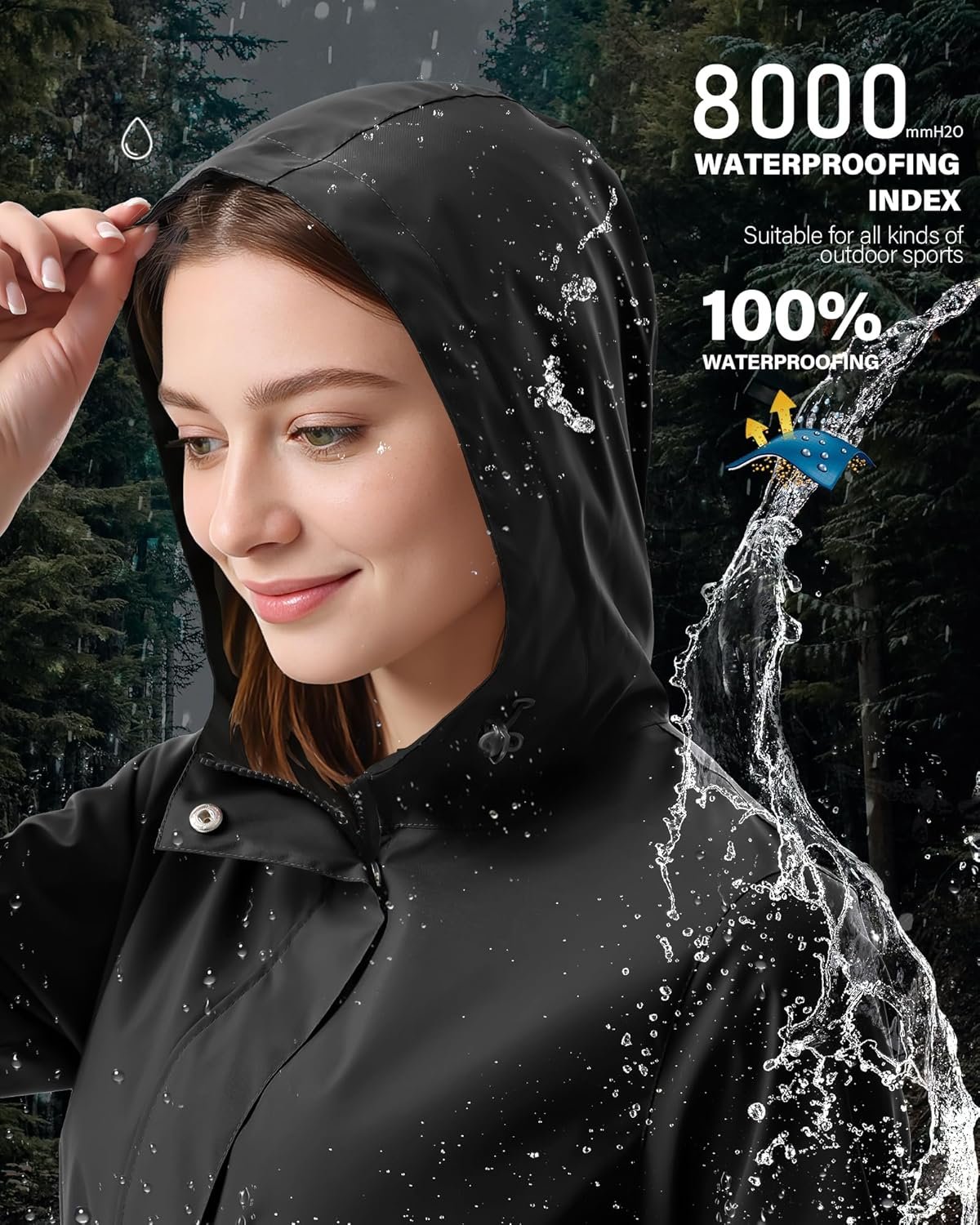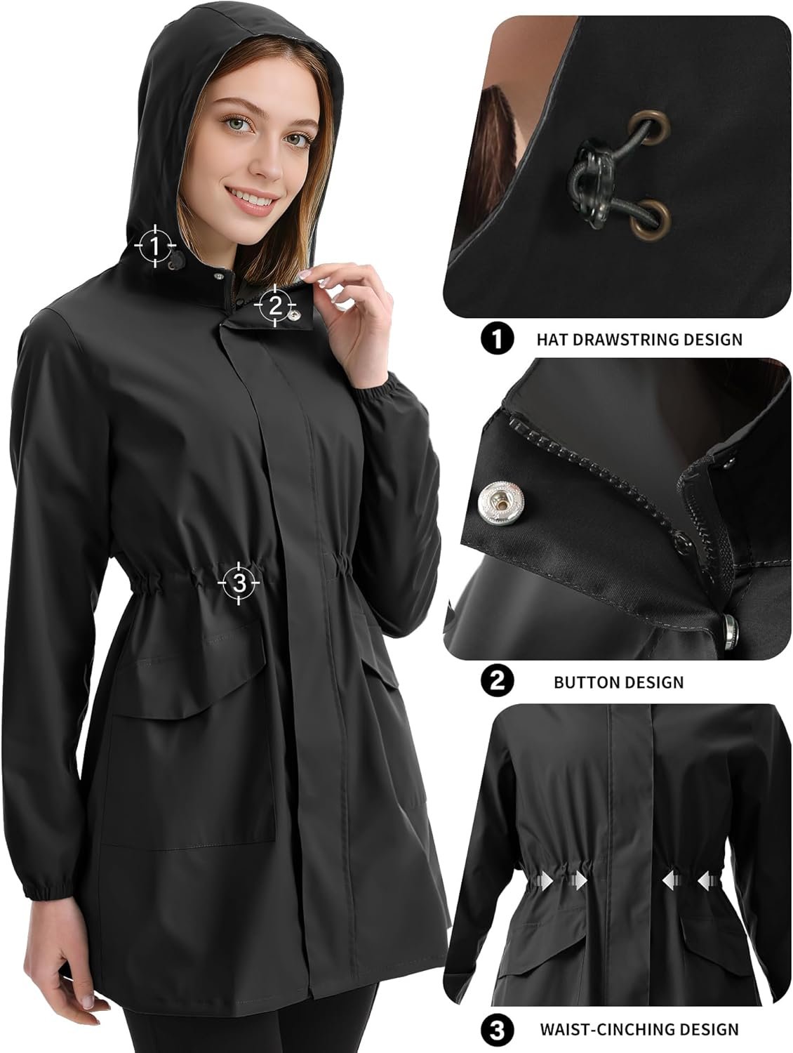iCreek Women’s Long Rain Jacket Waterproof Lightweight Packable Raincoat Hood Windbreaker for Outdoor Hiking, Cycling, Travel